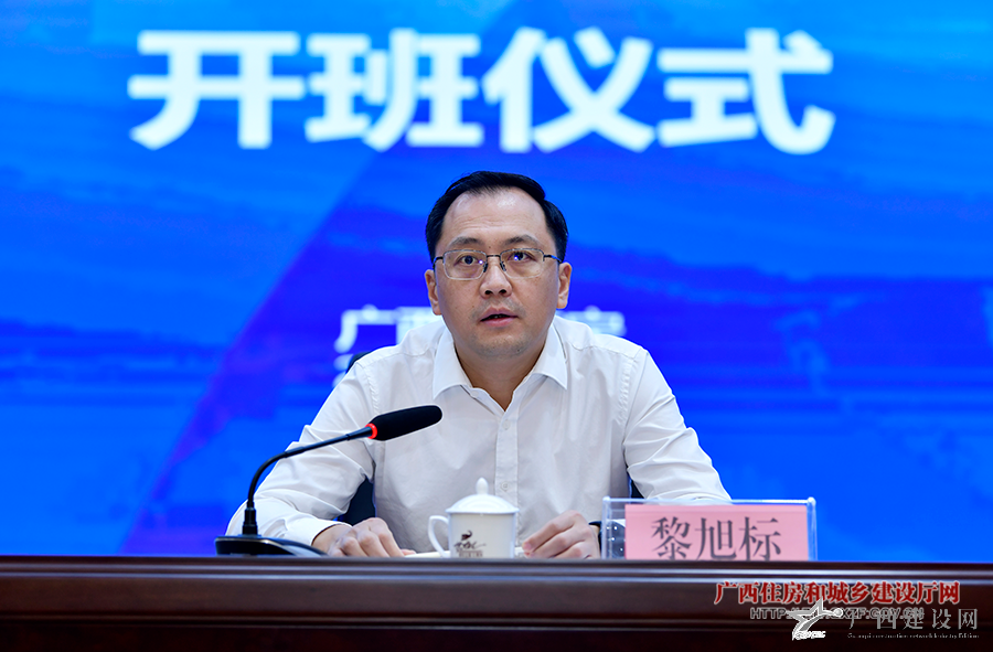 自治區(qū)住房城鄉(xiāng)建設(shè)廳黨組成員、副廳長(zhǎng)黎旭標(biāo)作開(kāi)班講話(huà)。劉文華/攝