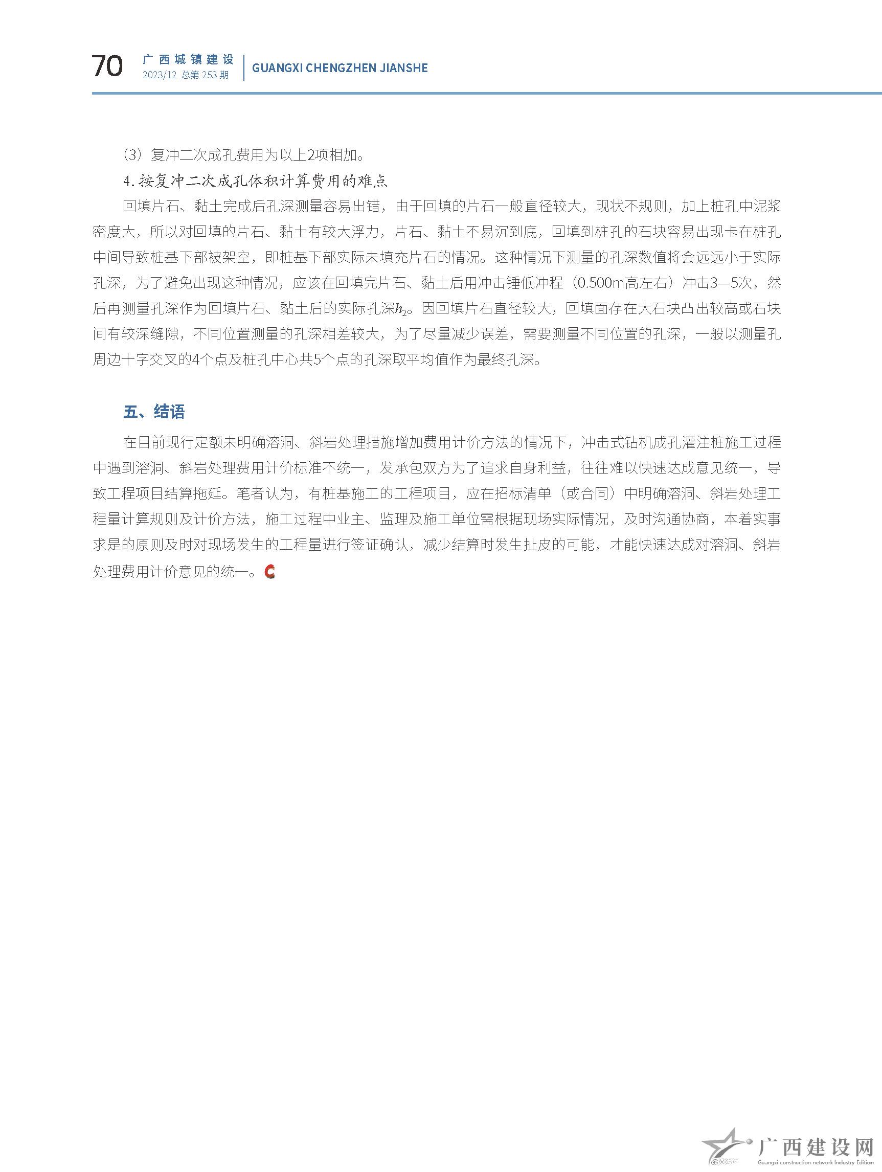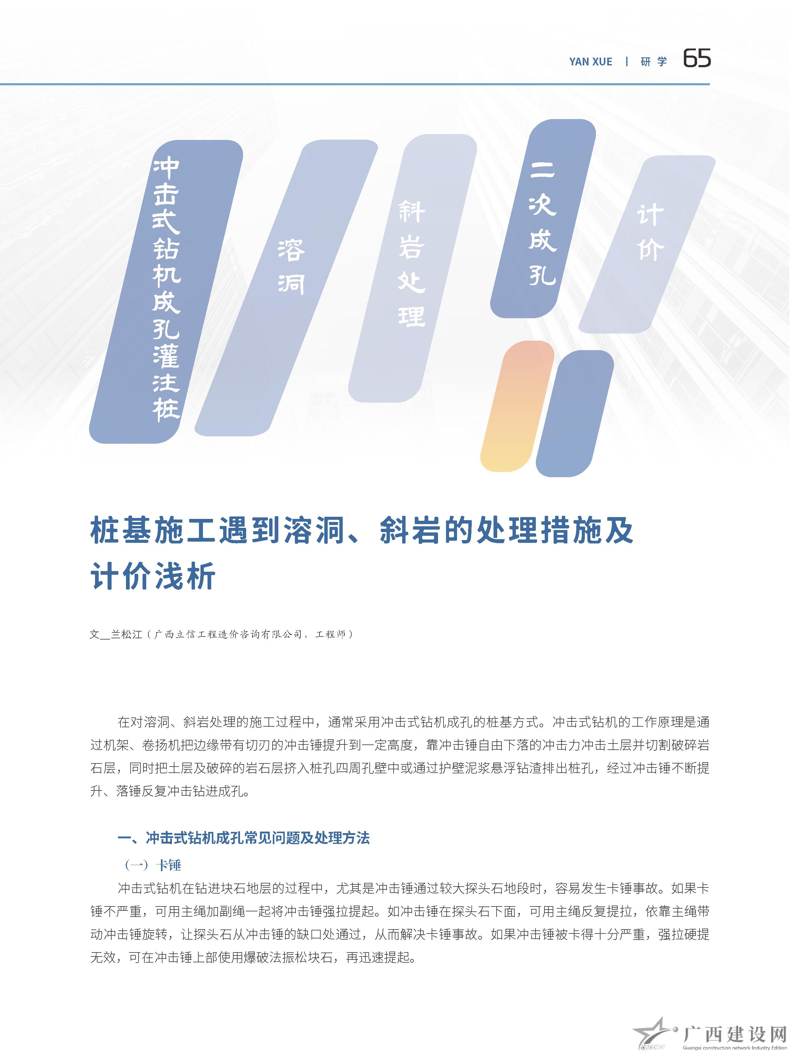 樁基施工遇到溶洞、斜巖的處理措施及計價淺析