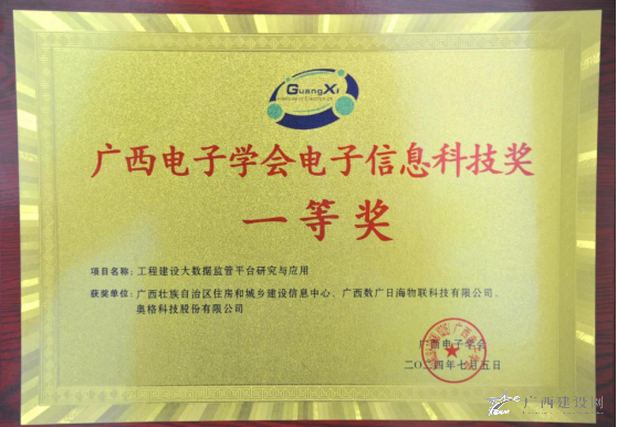 2024年度廣西電子學會電子信息科技獎分為自然科學類、技術發明類和科技進步類3個類別,共評出獲獎項目16項,其中,一等獎獲獎項目6項,二等獎獲獎項目8項,三等獎獲獎項目2項。信息中心申報的“工程建設大數據監管平臺研究與應用”項目榮獲科技進步獎一等獎。