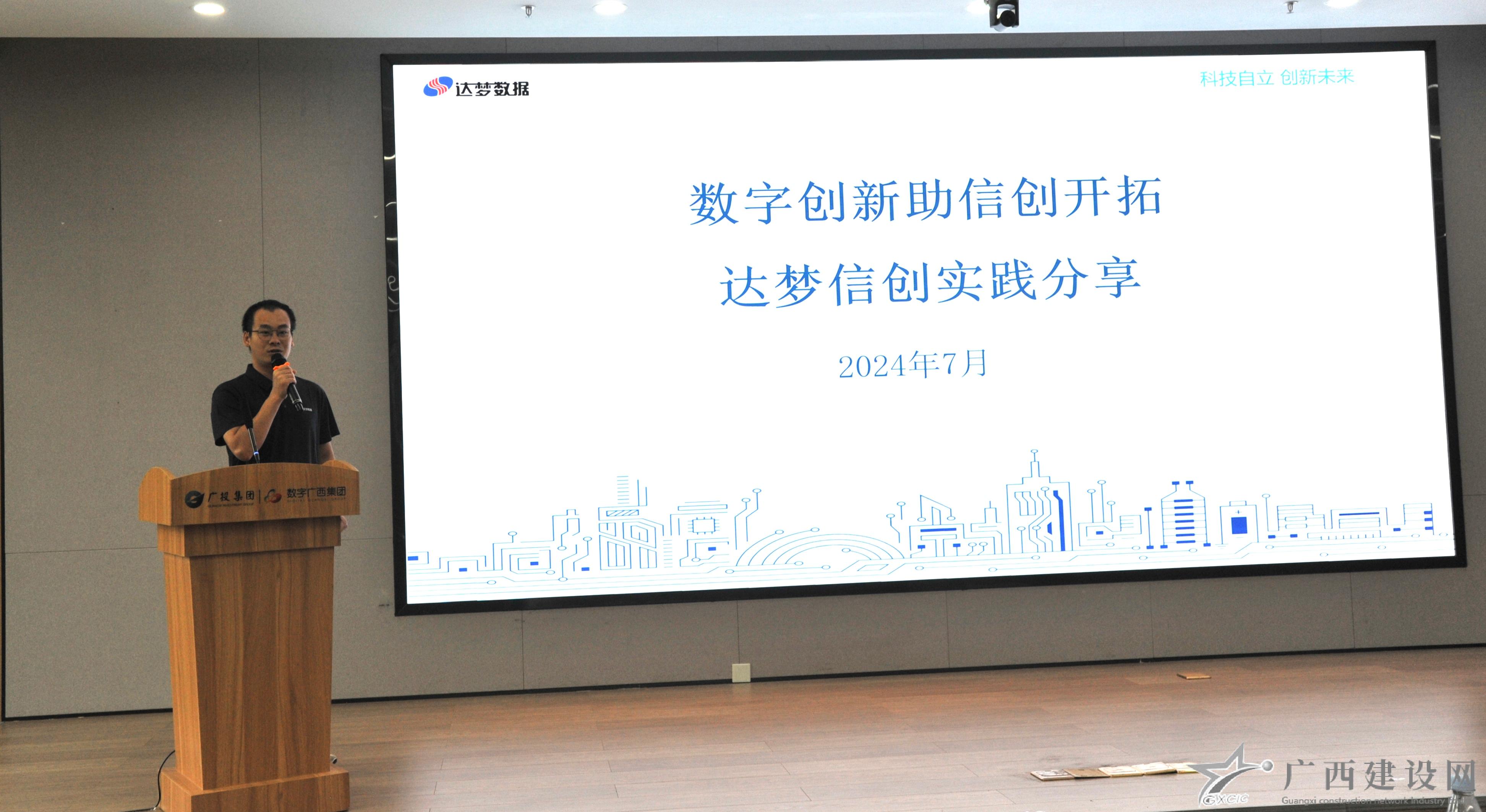 在信創應用工作座談交流會上,數字廣西集團有限公司副總經理楊冉上臺致辭。主題分享環節,中國—東盟信息港鯤鵬生態創新中心、廣西數廣信創信息技術有限公司、武漢達夢數據庫股份有限公司廣西分公司分別作主題交流和經驗分享。