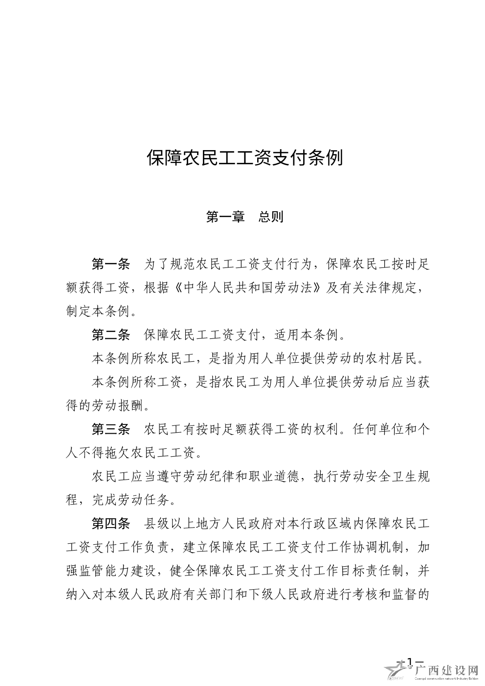保障農民工工資支付條例