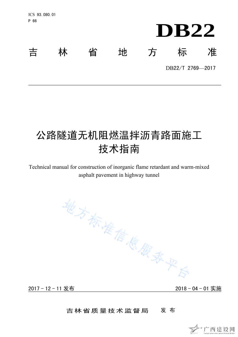 DB22 T2769-2017公路隧道無機(jī)阻燃溫拌瀝青路面施工技術(shù)指南