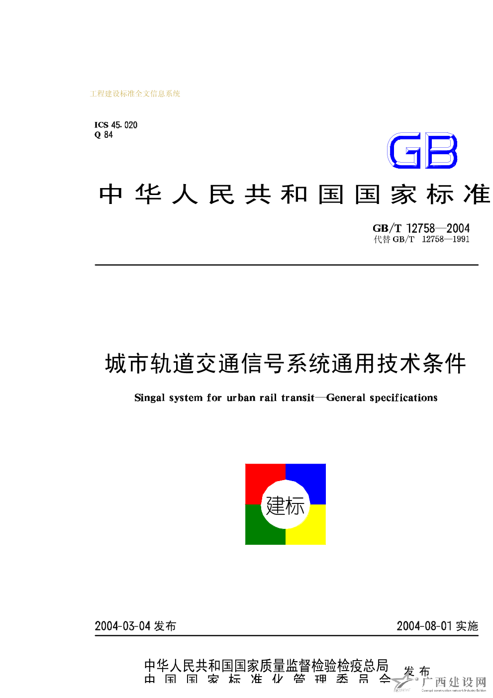 城市軌道交通信號系統通用技術條件 GB/T12758-2004