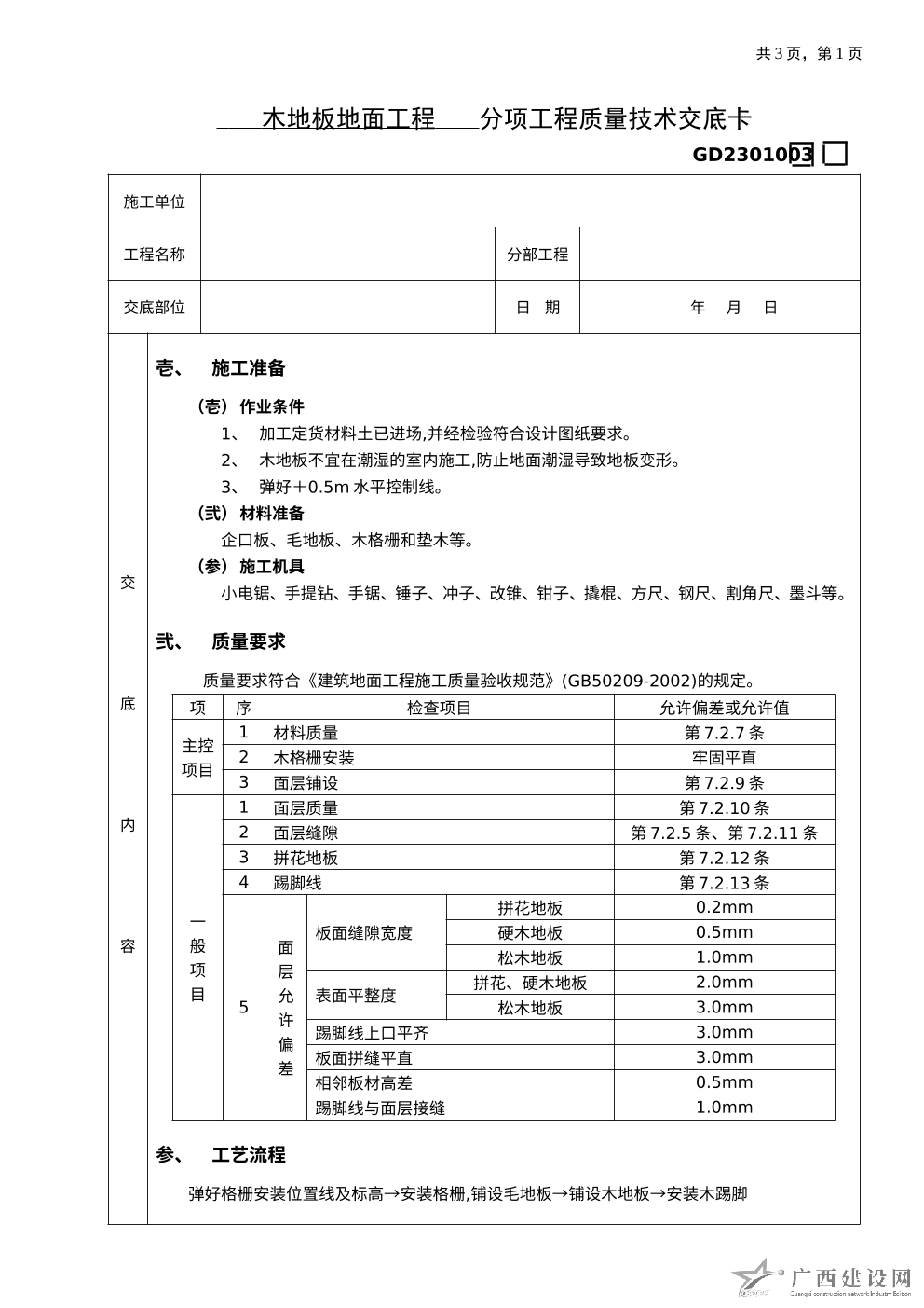 木地板地面技術(shù)交底記錄