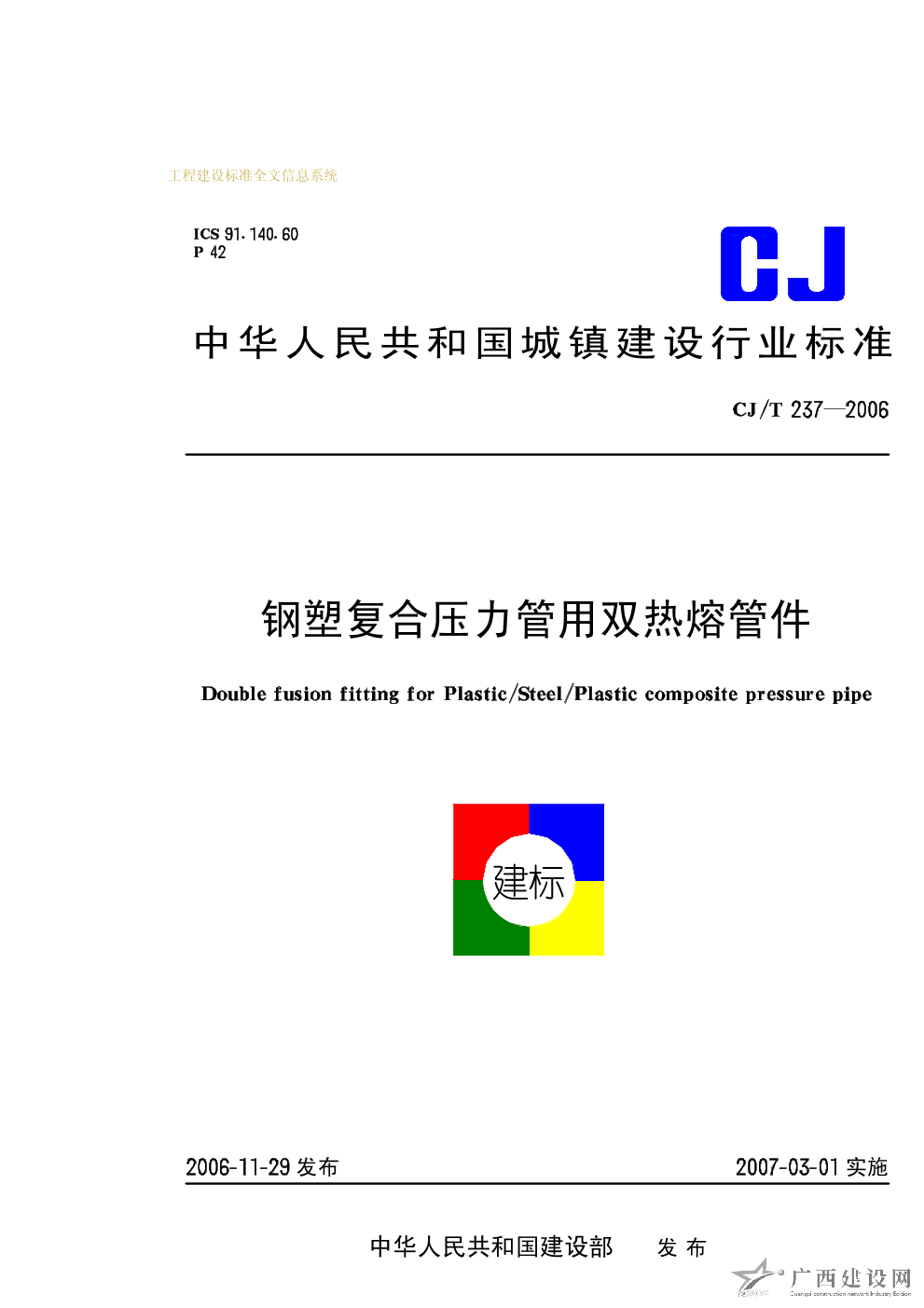 鋼塑復合壓力管用雙熱熔管件 CJ/T237-2006