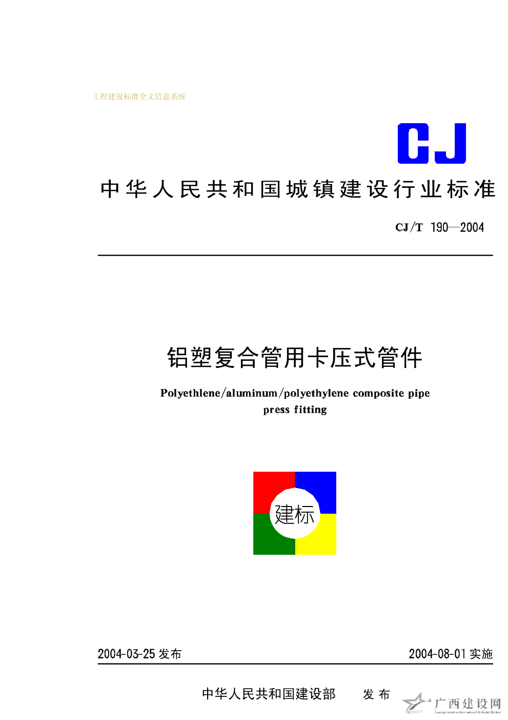 鋁塑復合管用卡壓式管件 CJ/T190-2004