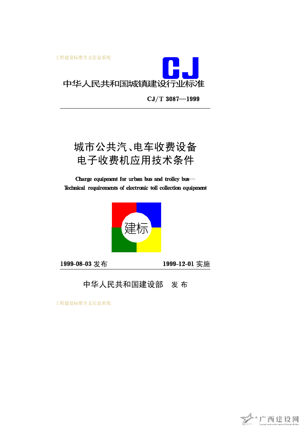 城市公共汽、電車收費設備電子收費機應用技術條件 CJ/T3087—1999