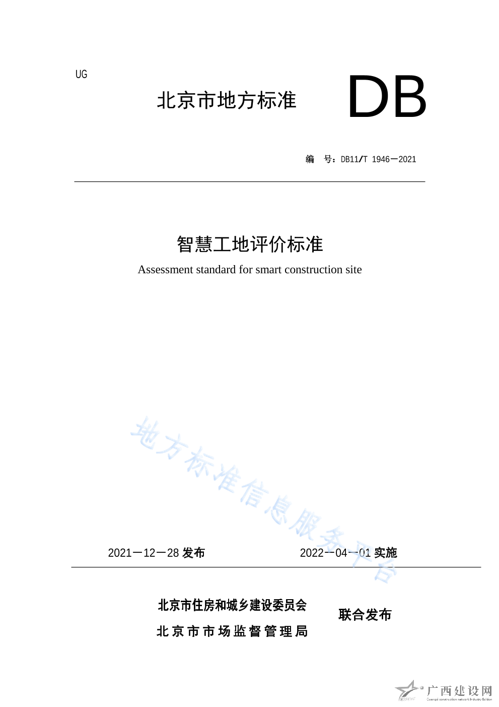 DB11 T+1946-2021智慧工地評價標(biāo)準(zhǔn)