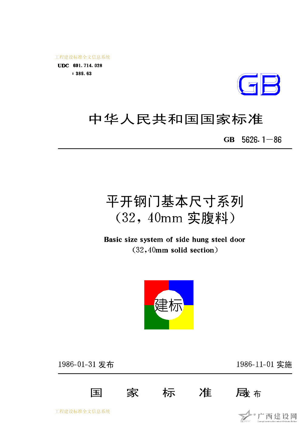 平開鋼門基本尺寸系列(32,40mm實腹料) GB5626.1-86