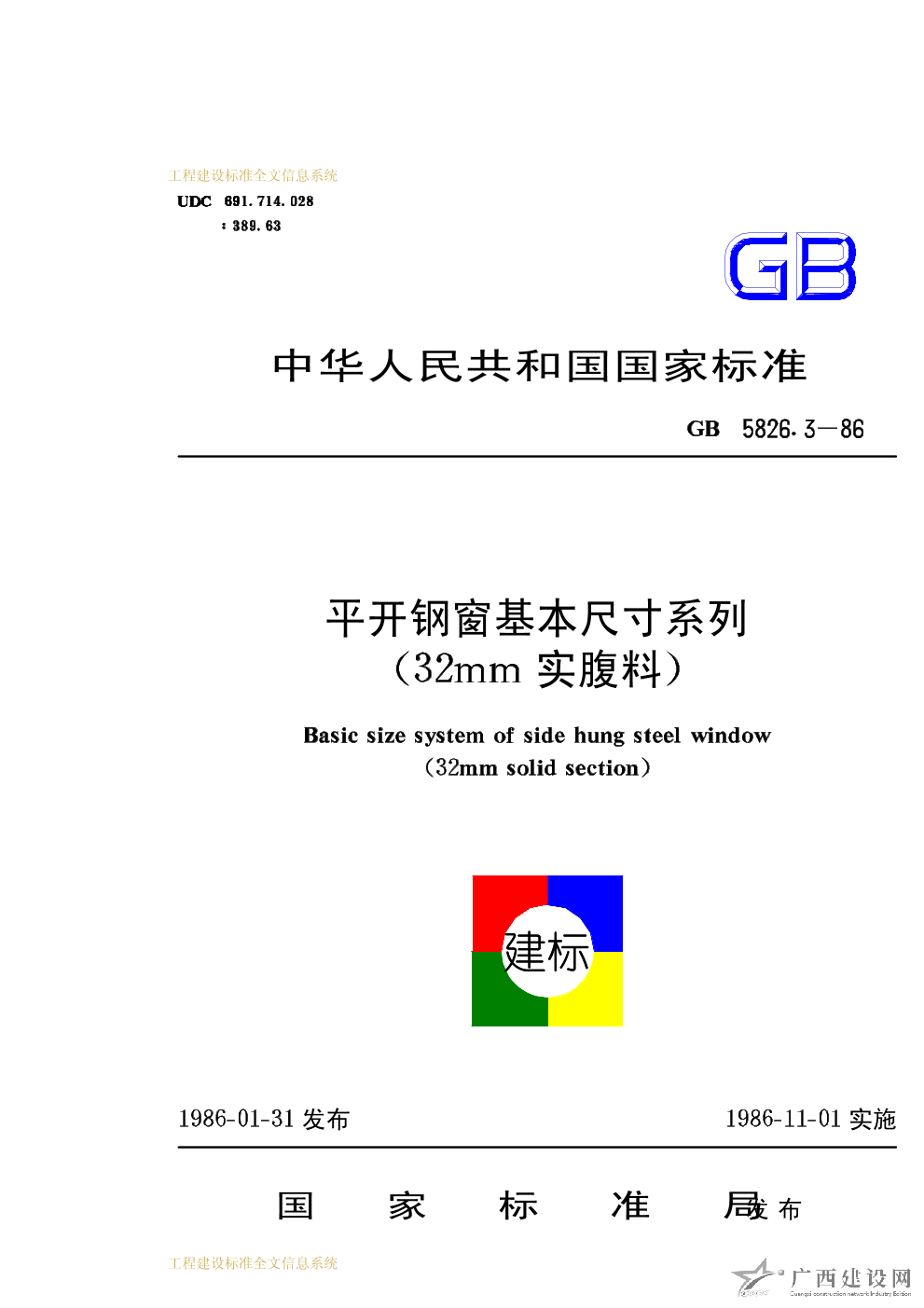 平開鋼窗基本尺寸系列(32mm實腹料) GB5826.3-86