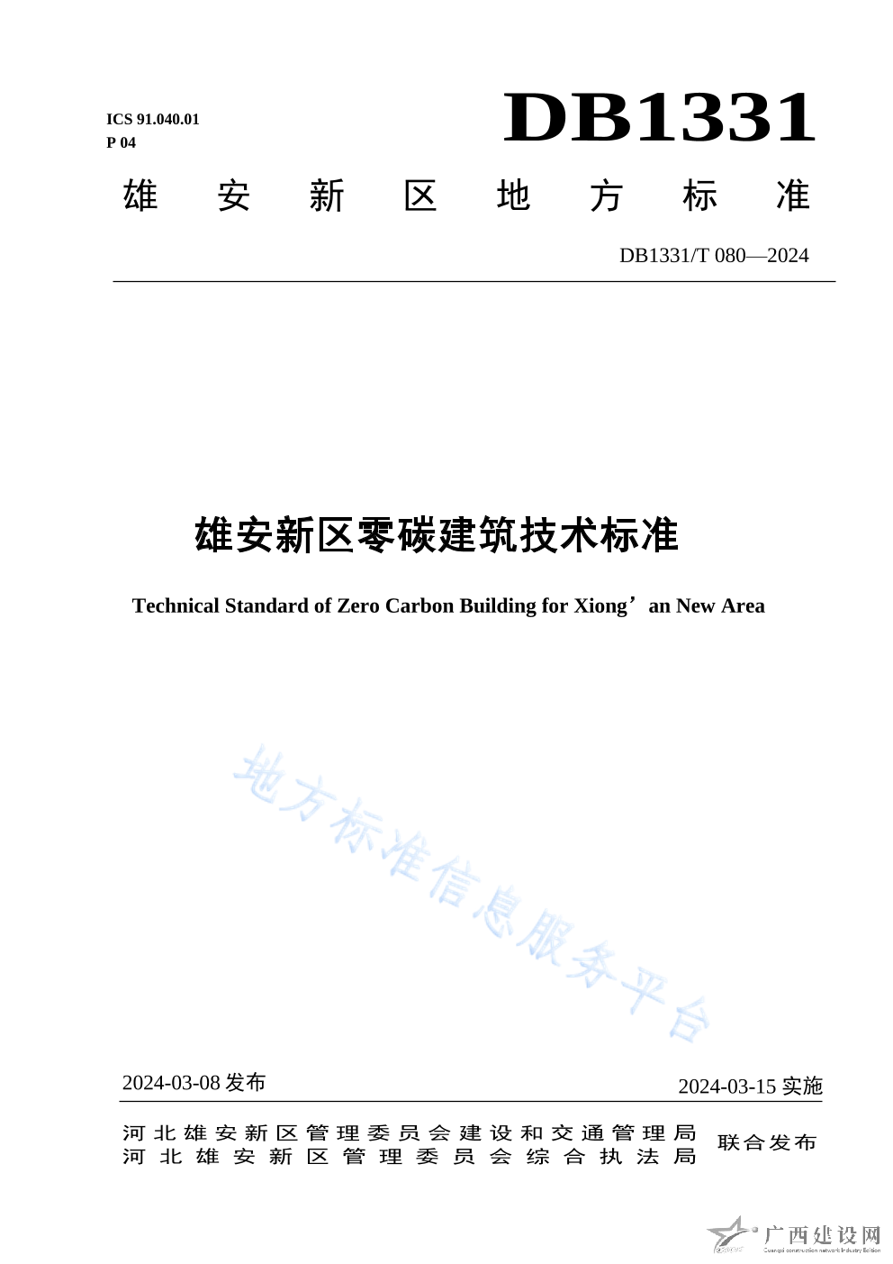 DB1331T 080-2024《雄安新區零碳建筑技術標準》