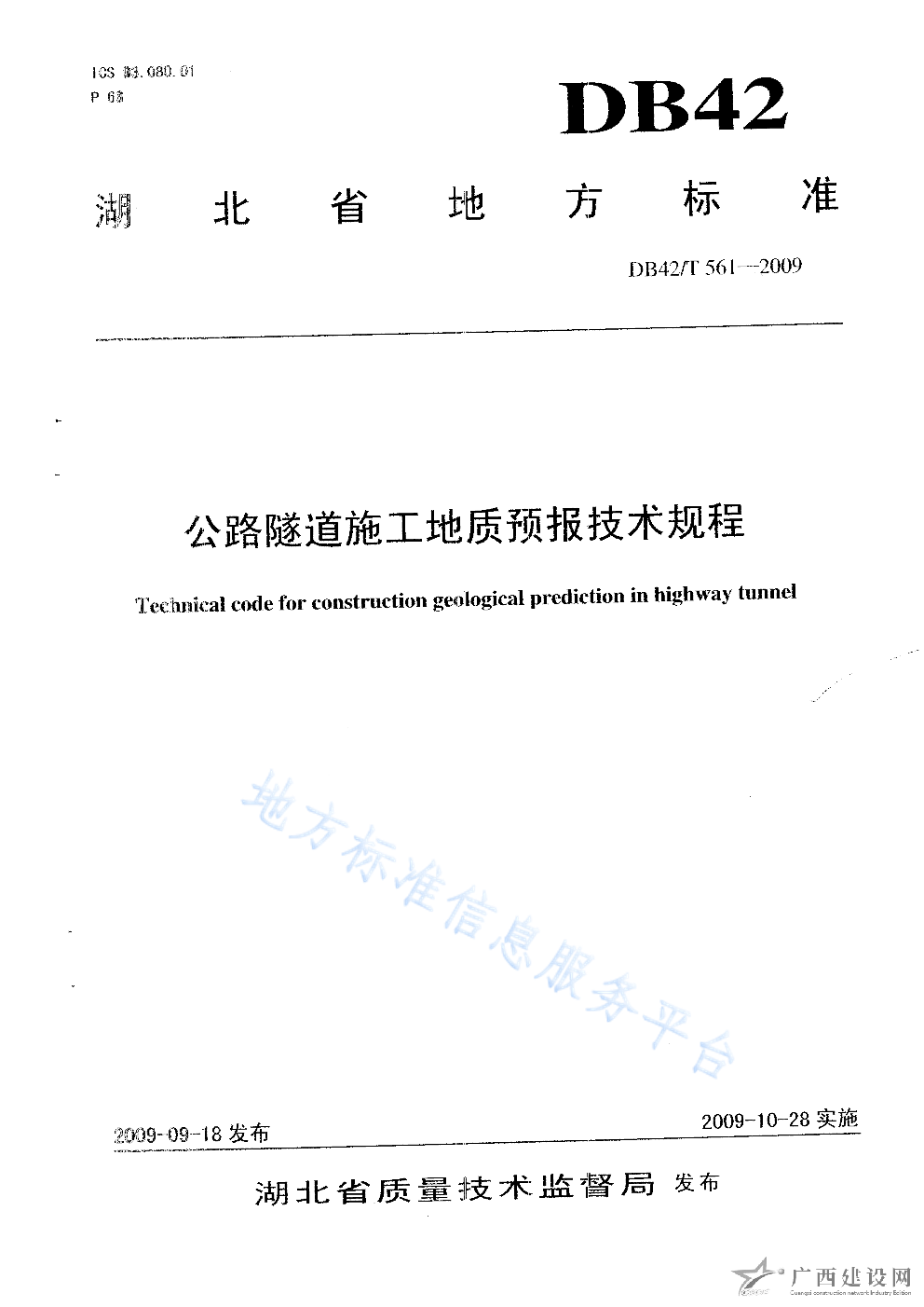 DB42 561-2009公路隧道施工地質(zhì)預(yù)報技術(shù)規(guī)程
