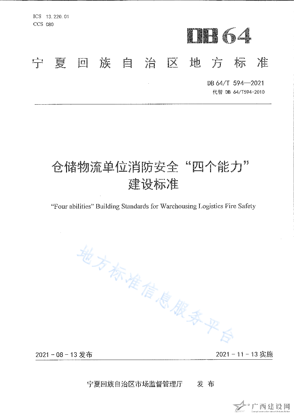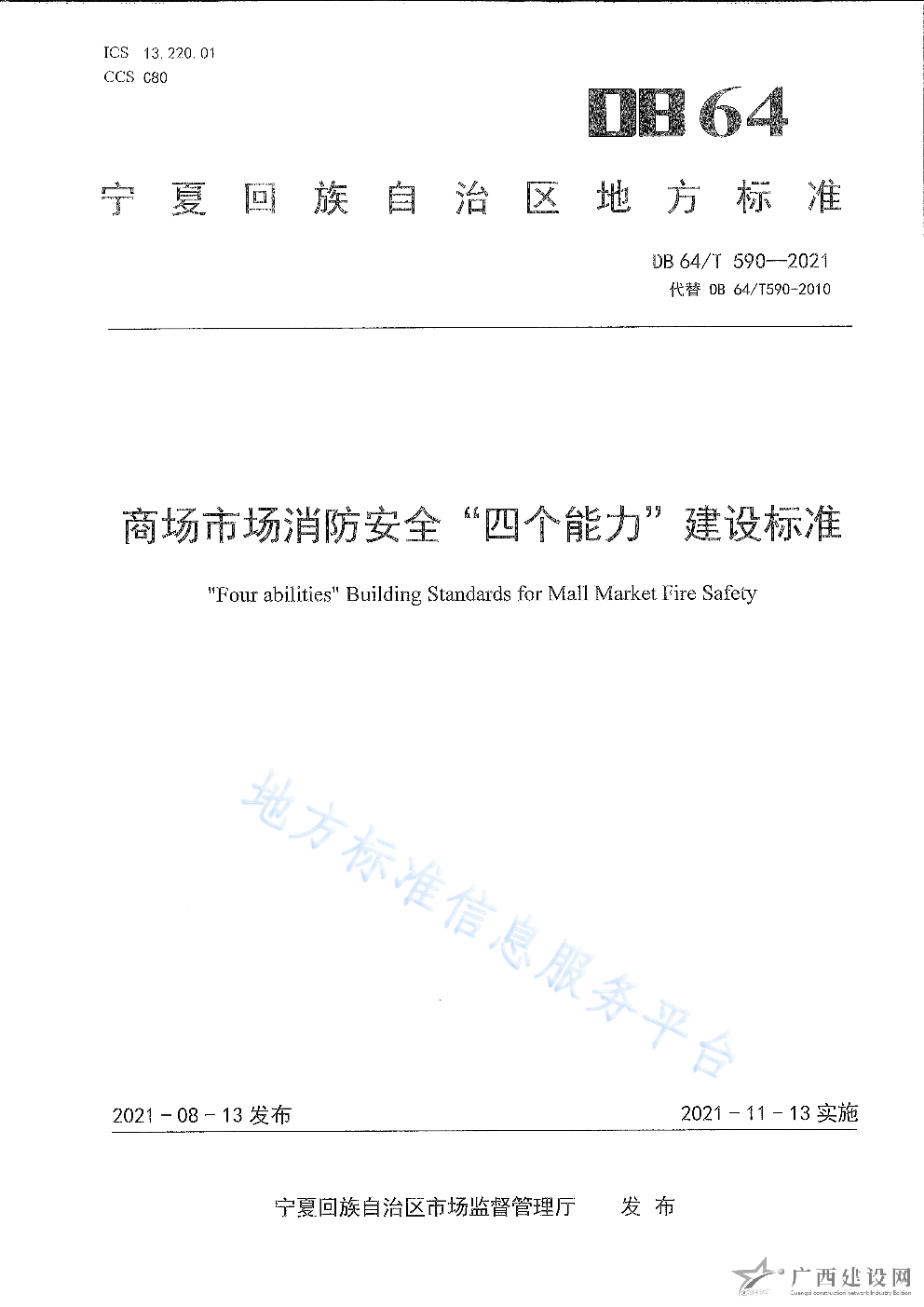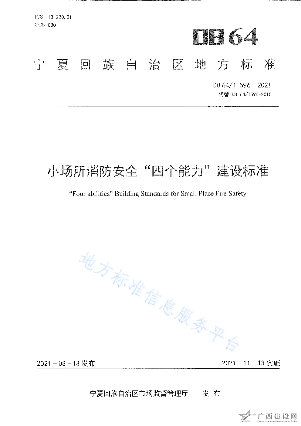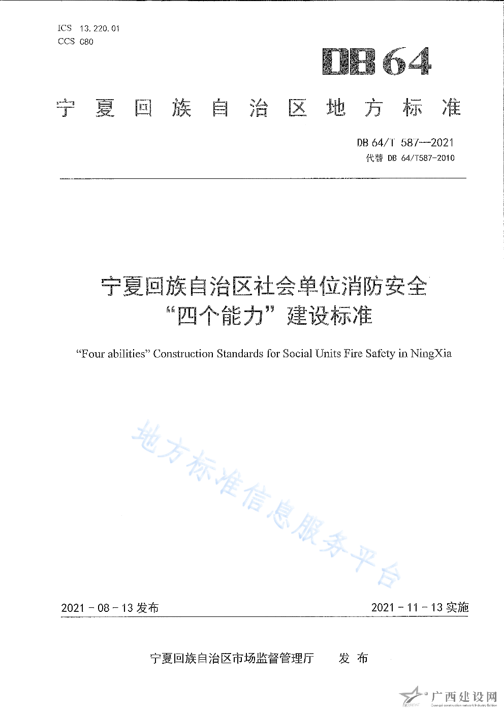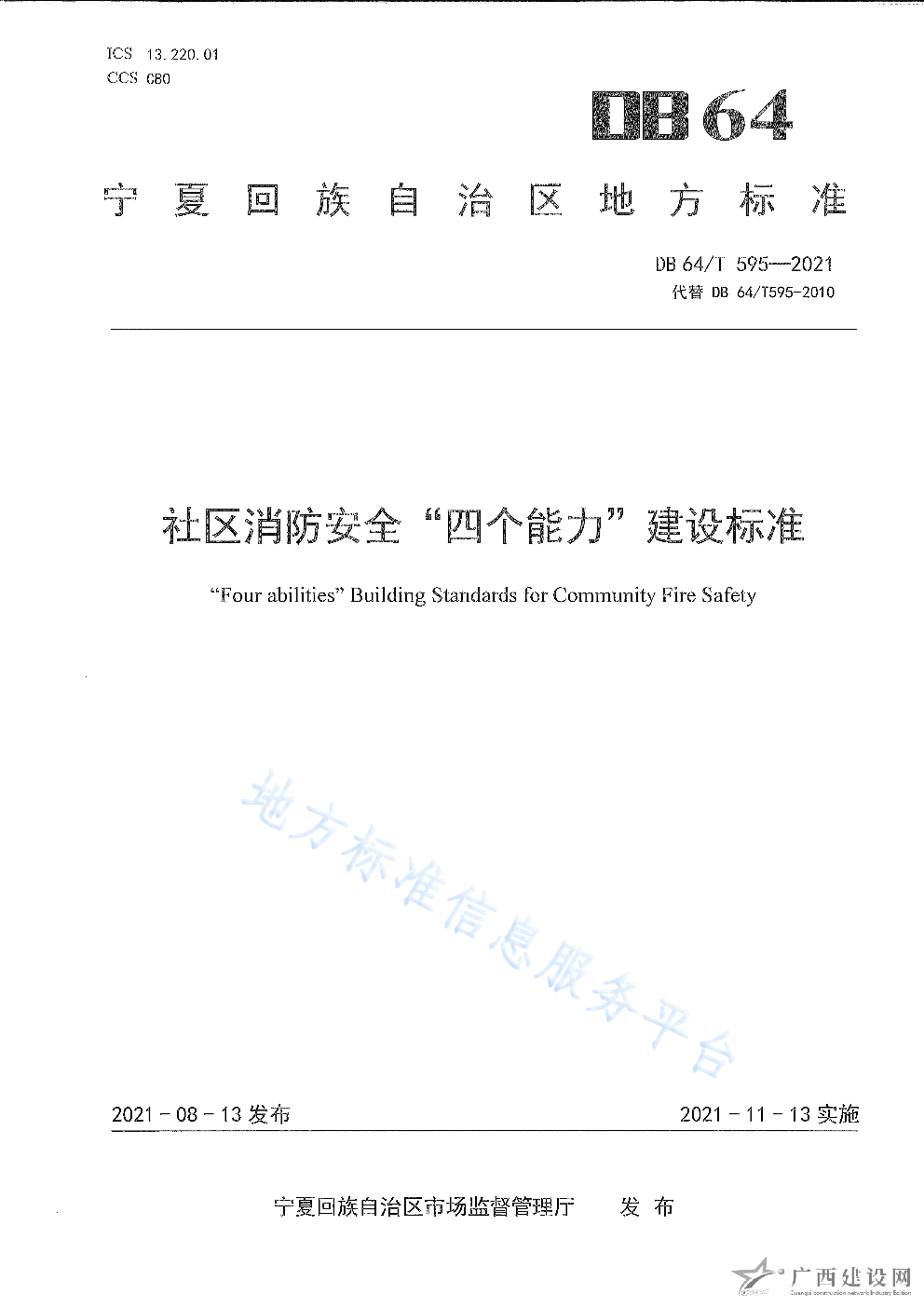 DB64 1772-2021農村消防安全技術標準