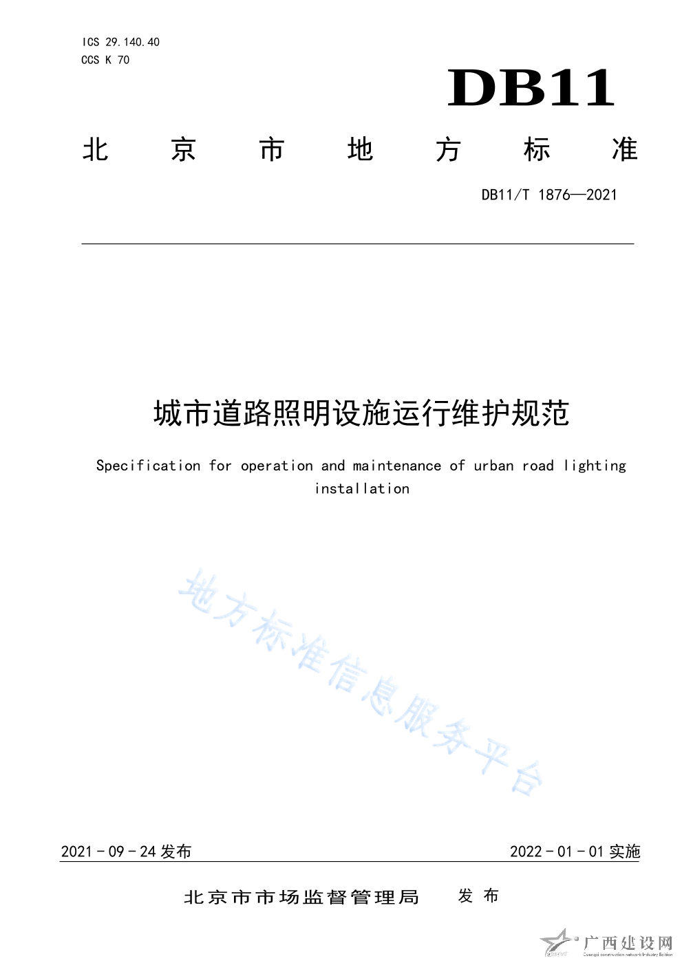 DB11 T+1876-2021城市道路照明設(shè)施運(yùn)行維護(hù)規(guī)范