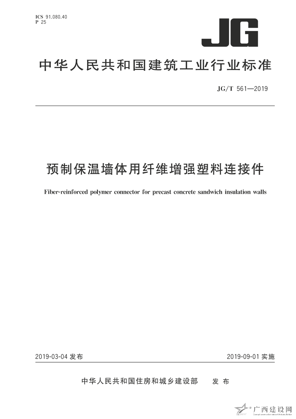 JGT561-2019 預制保溫墻體用纖維增強塑料連接件