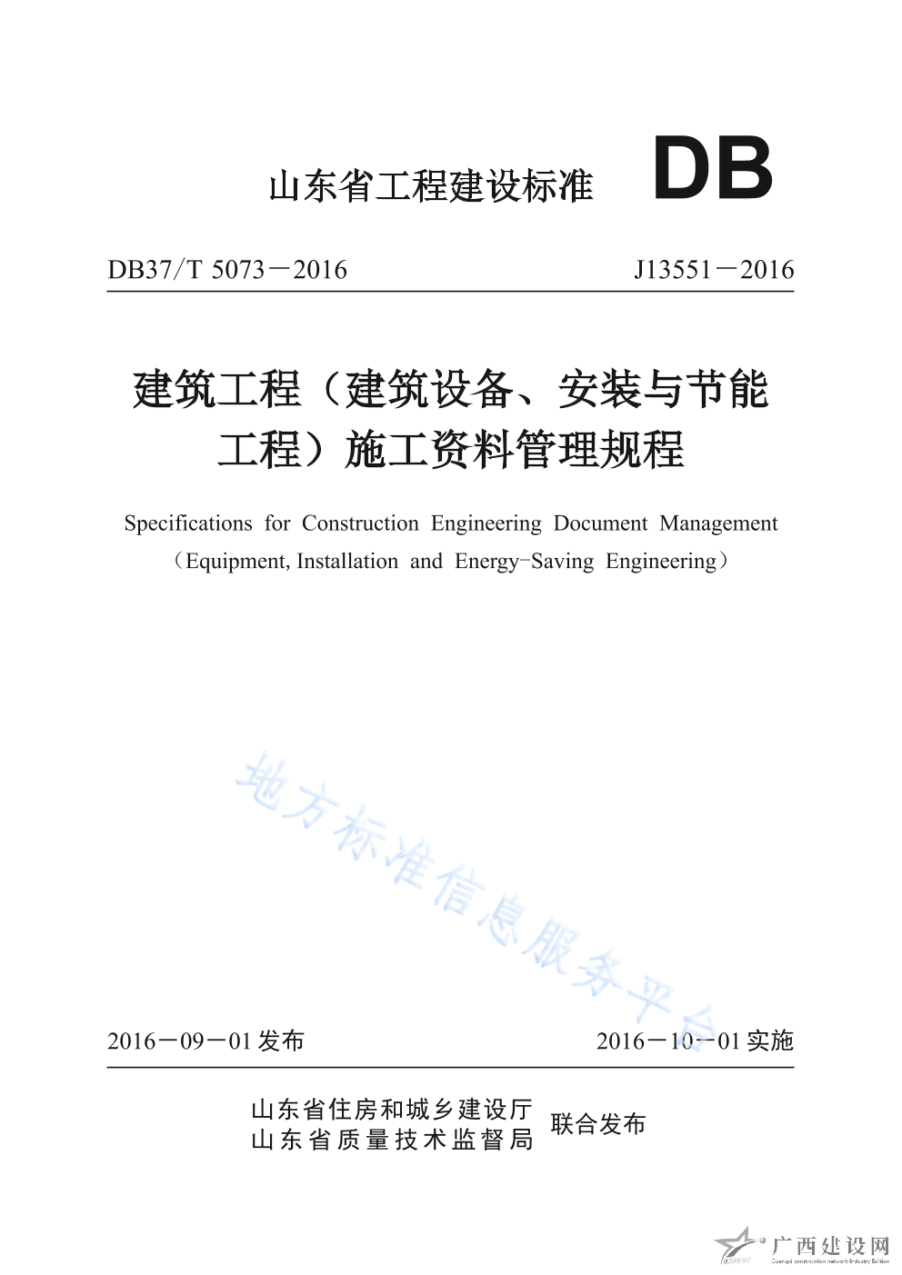 DB37 T5073-2016建筑工程(建筑設(shè)備、安裝與節(jié)能工程)施工資料管理規(guī)程