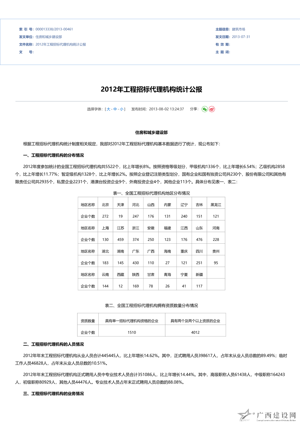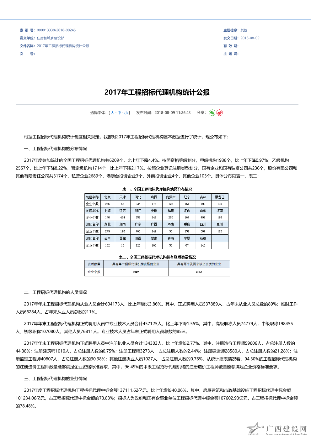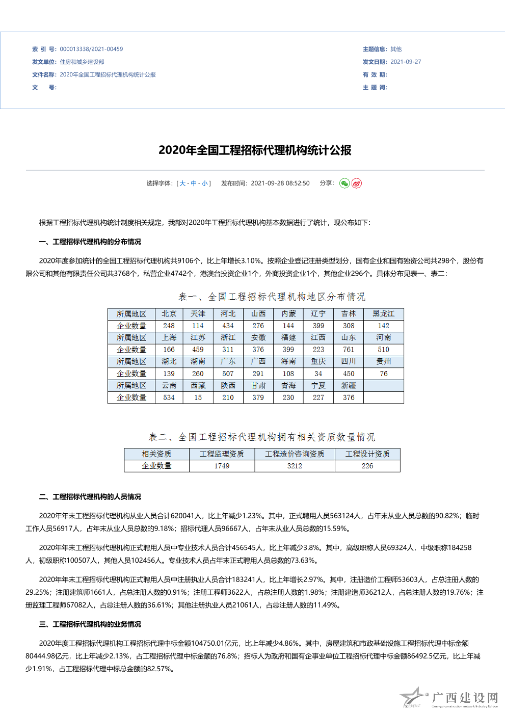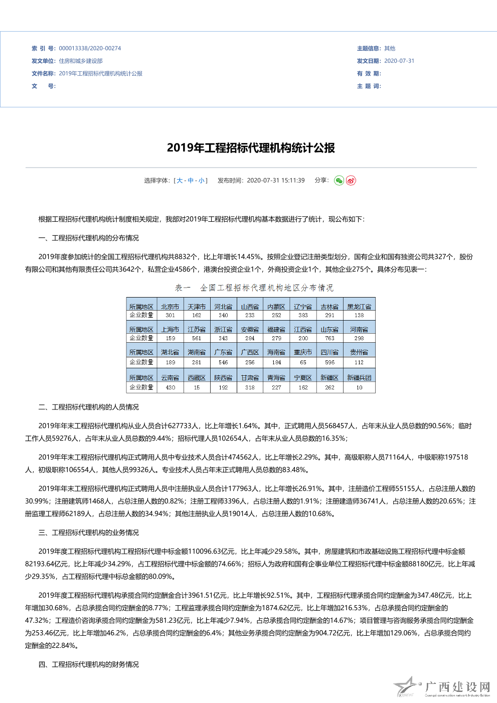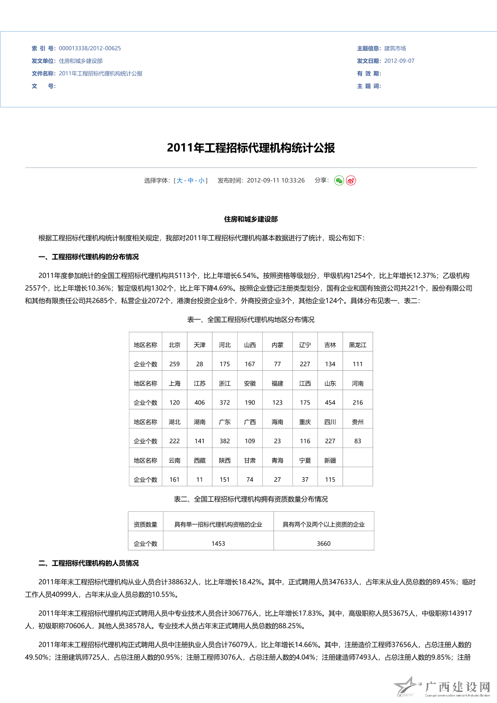 2010年全國工程招標代理機構統計公報