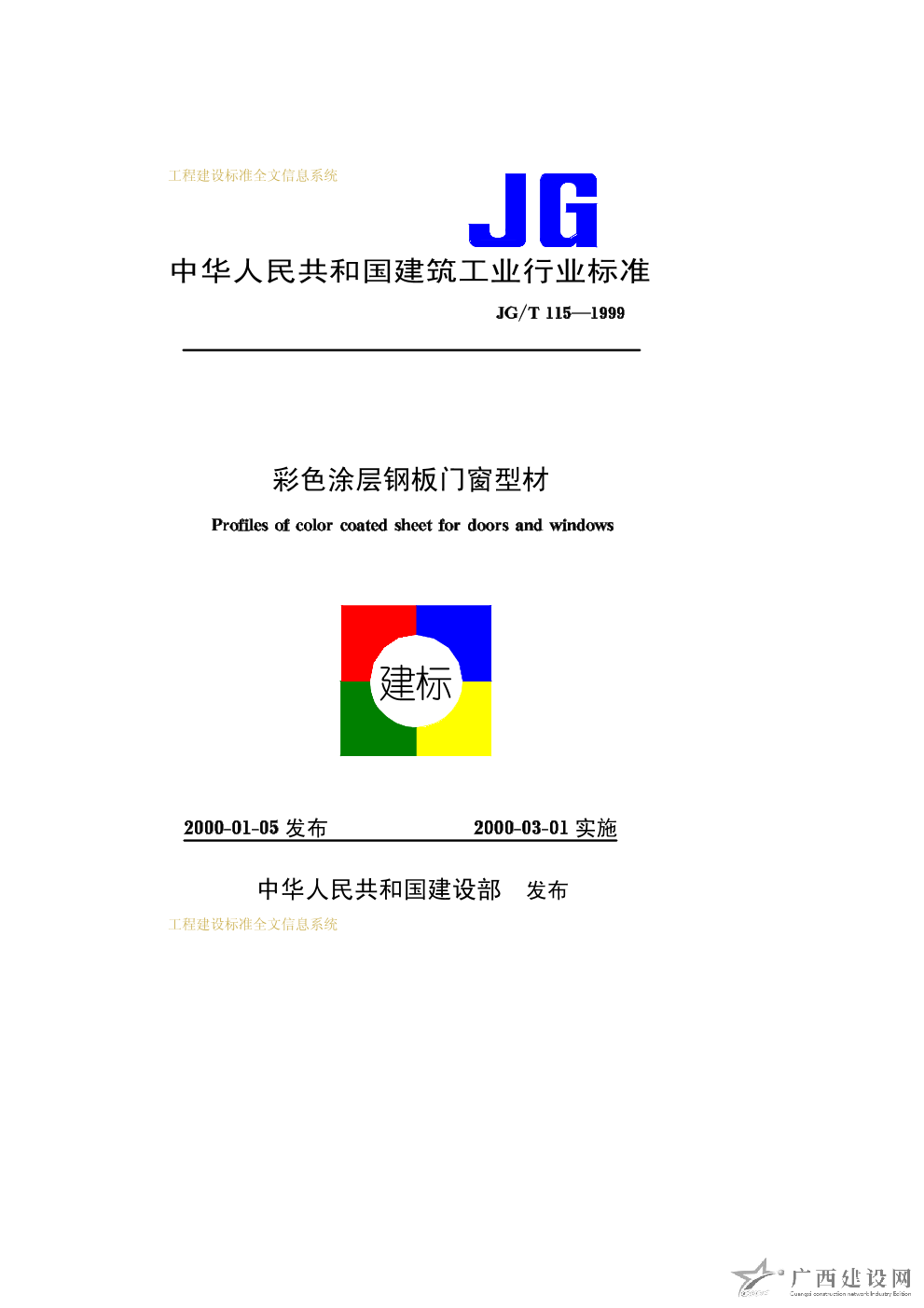 彩色涂層鋼板門窗型材 JG/T115—1999