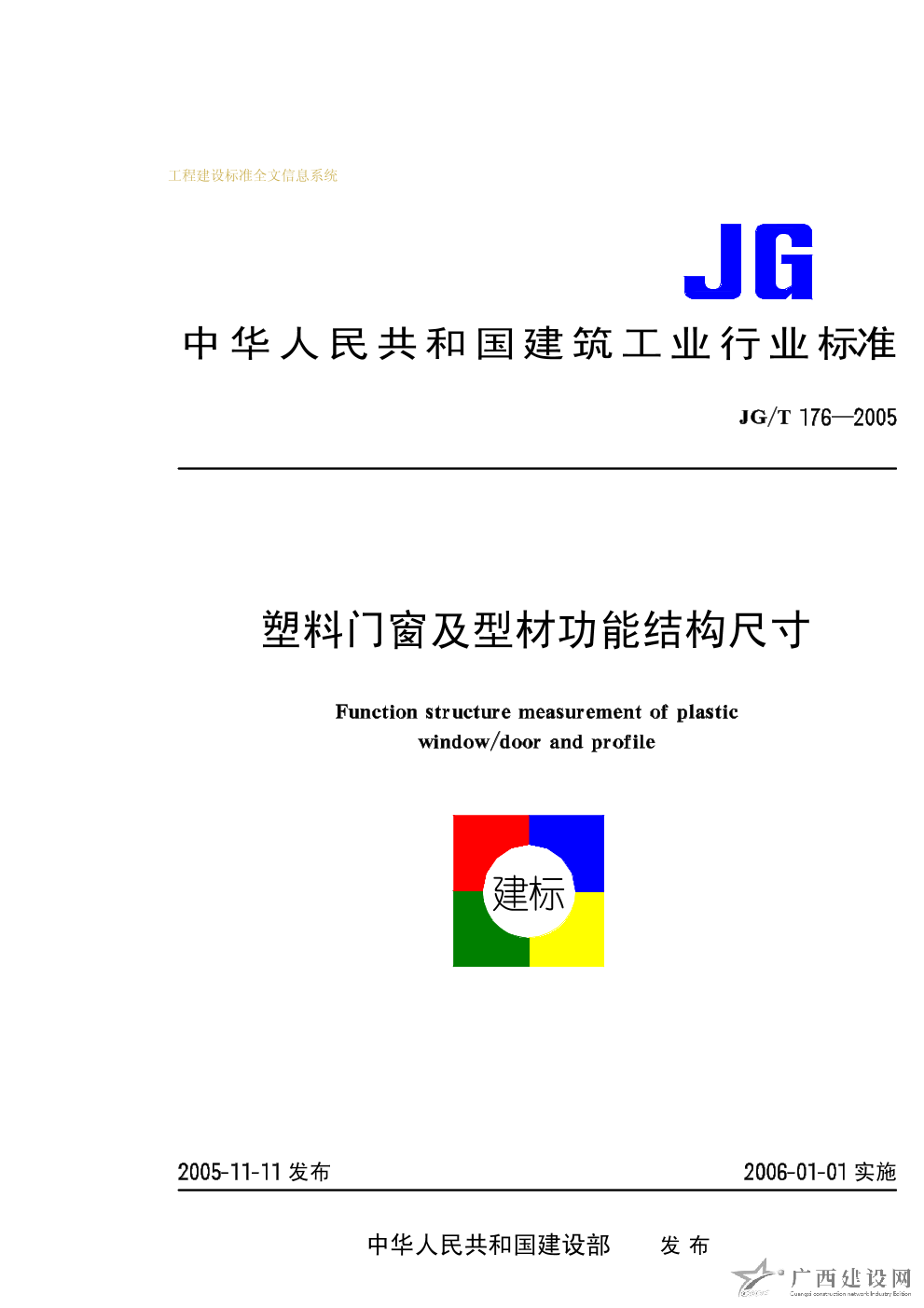 塑料門窗及型材功能結(jié)構(gòu)尺寸 JG/T176-2005