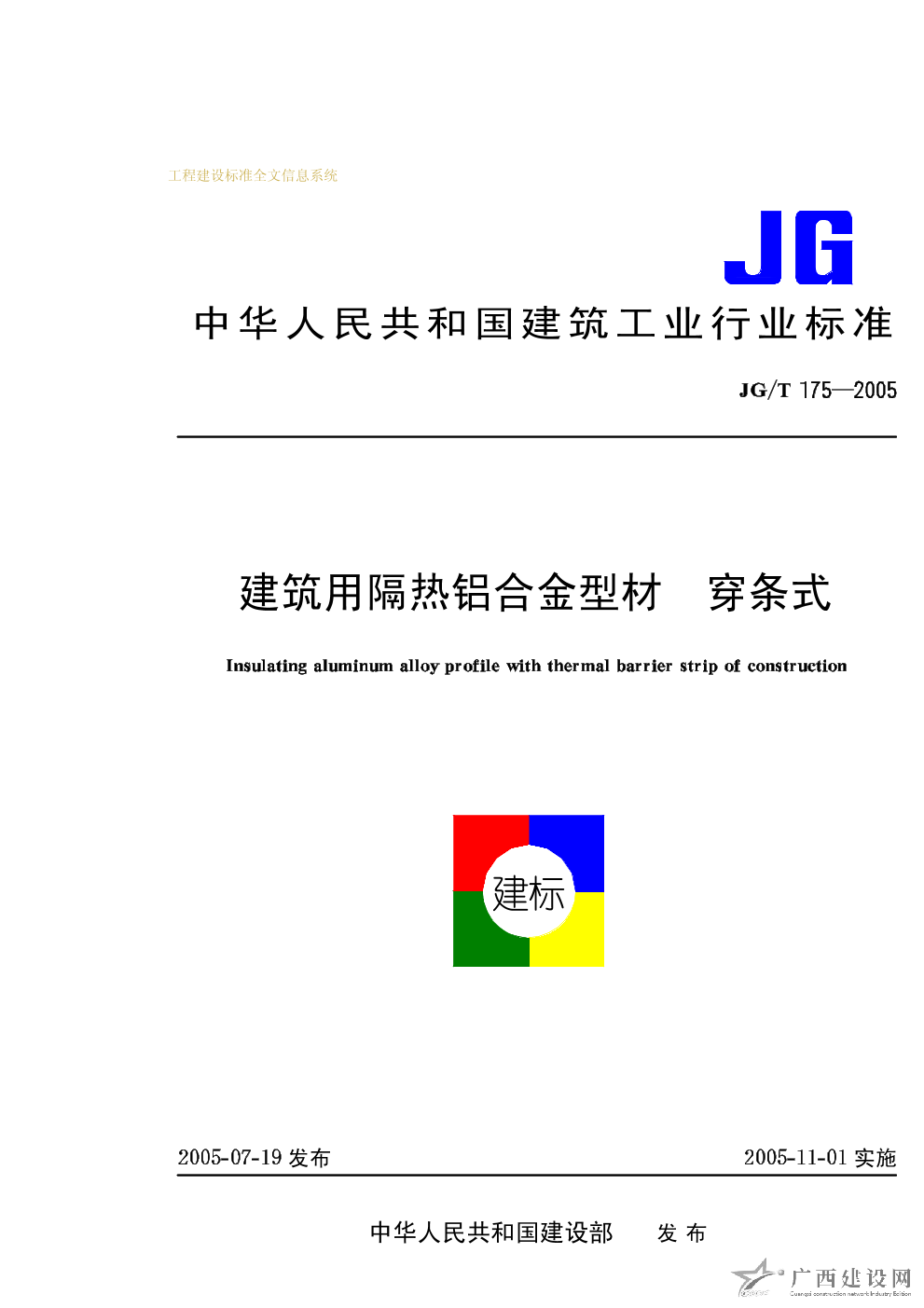 建筑用隔熱鋁合金型材 穿條式 JG/T175-2005
