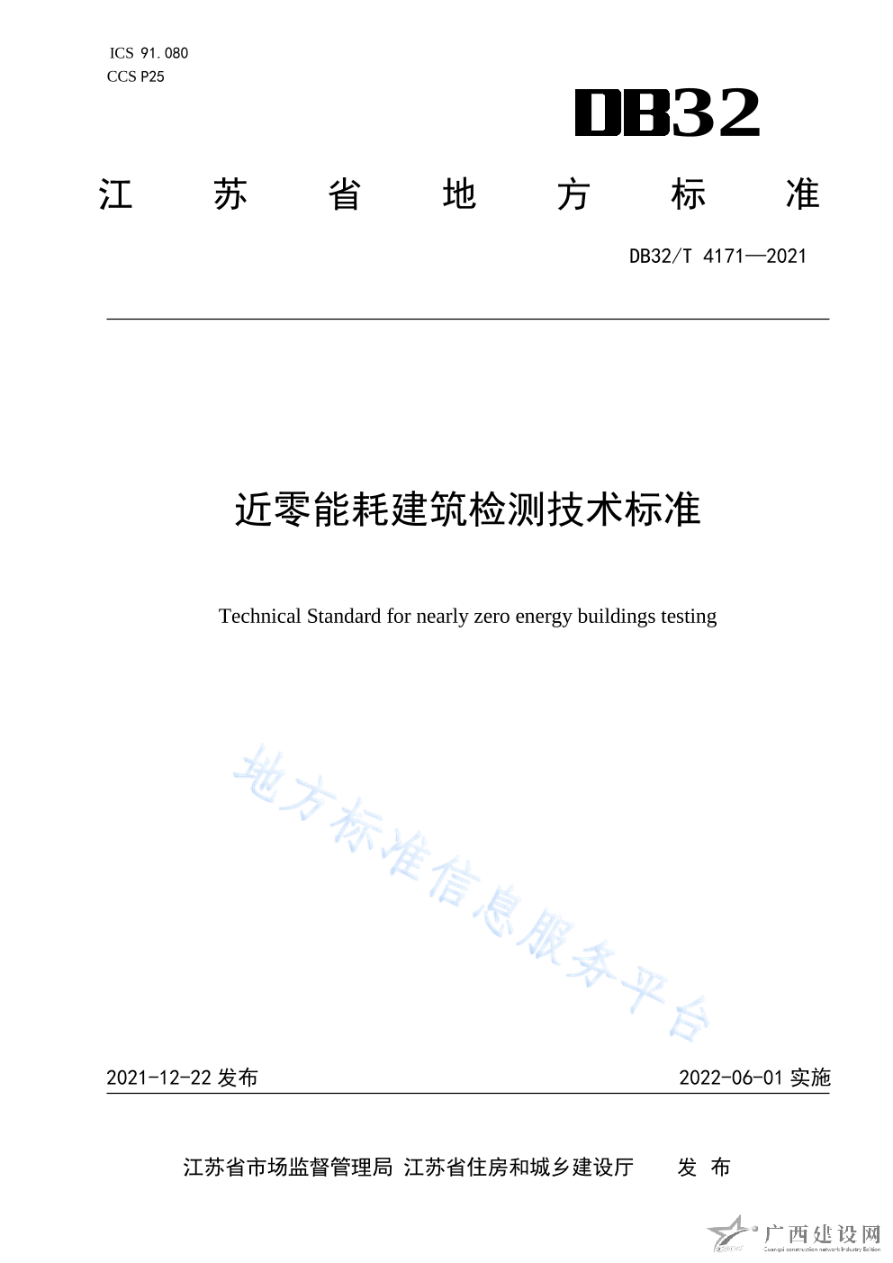 DB32 T4171-2021近零能耗建筑檢測技術標準