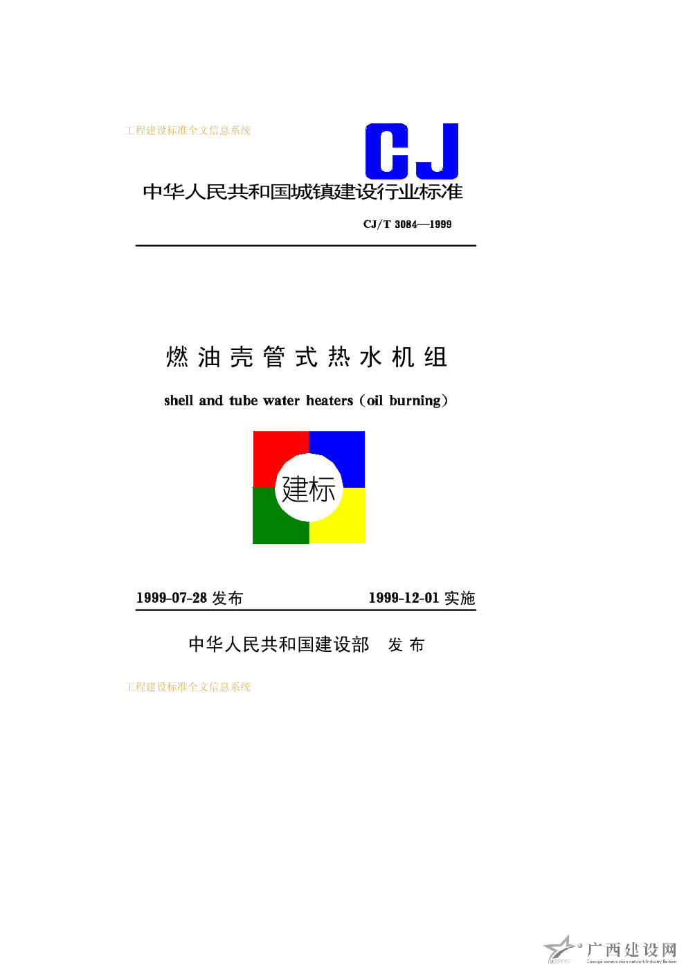 燃油殼管式熱水機(jī)組 CJ/T3084—1999