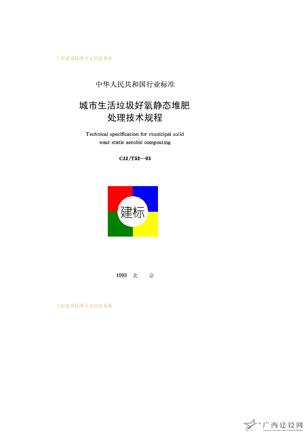 城市生活垃圾好氧靜態(tài)堆肥處理技術(shù)規(guī)程 CJJ/T52—93