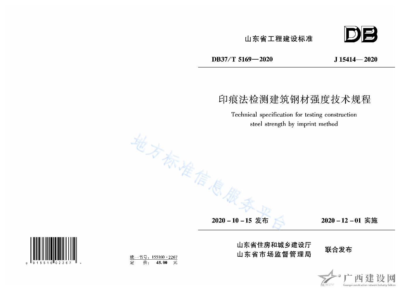 DB37 T5169-2020印痕法檢測建筑鋼材強(qiáng)度技術(shù)規(guī)程