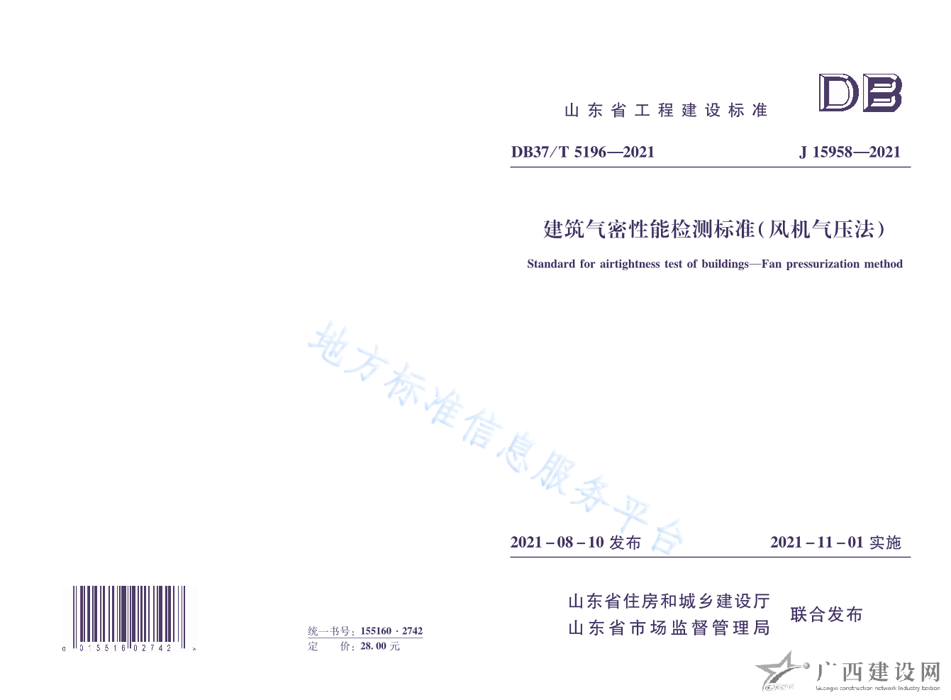 DB37 T5196-2021建筑氣密性能檢測標(biāo)準(zhǔn)(風(fēng)機(jī)氣壓法)