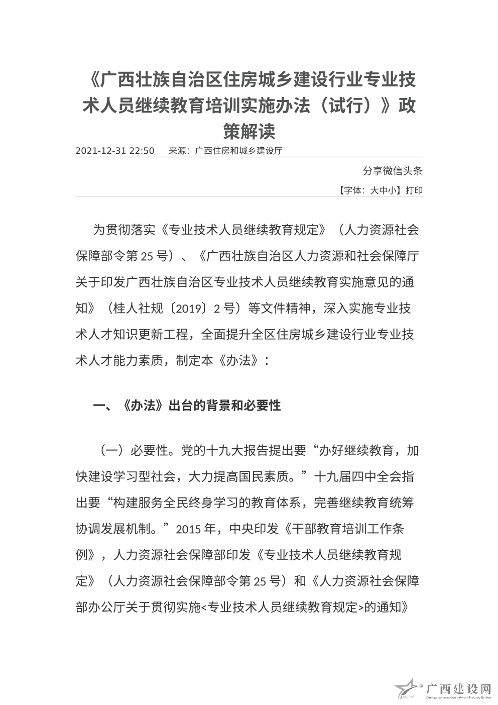 《廣西壯族自治區住房城鄉建設科學技術計劃項目管理辦法》政策解讀材料