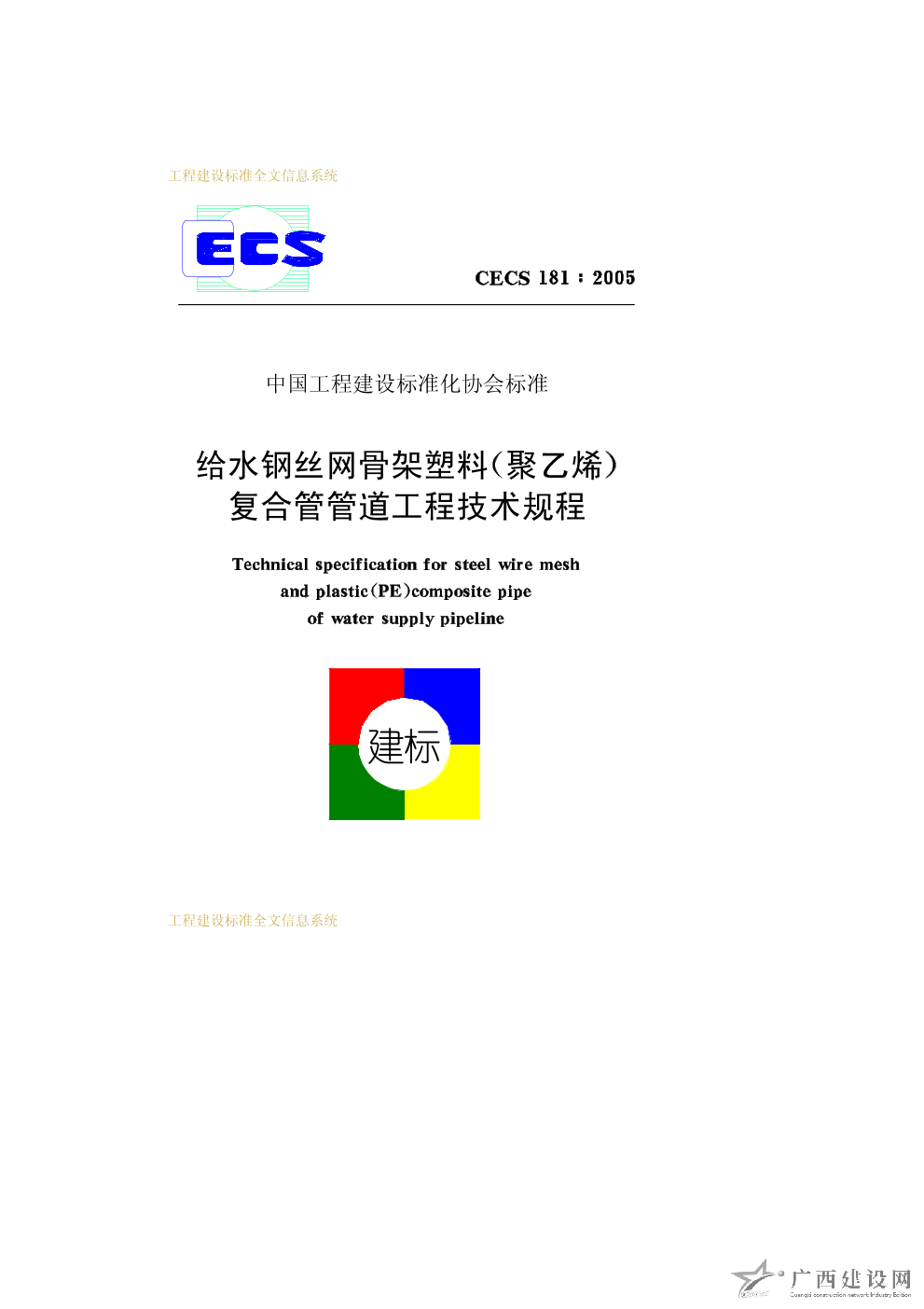 給水鋼絲網骨架塑料(聚乙烯)復合管管道工程技術規程 CECS181-2005