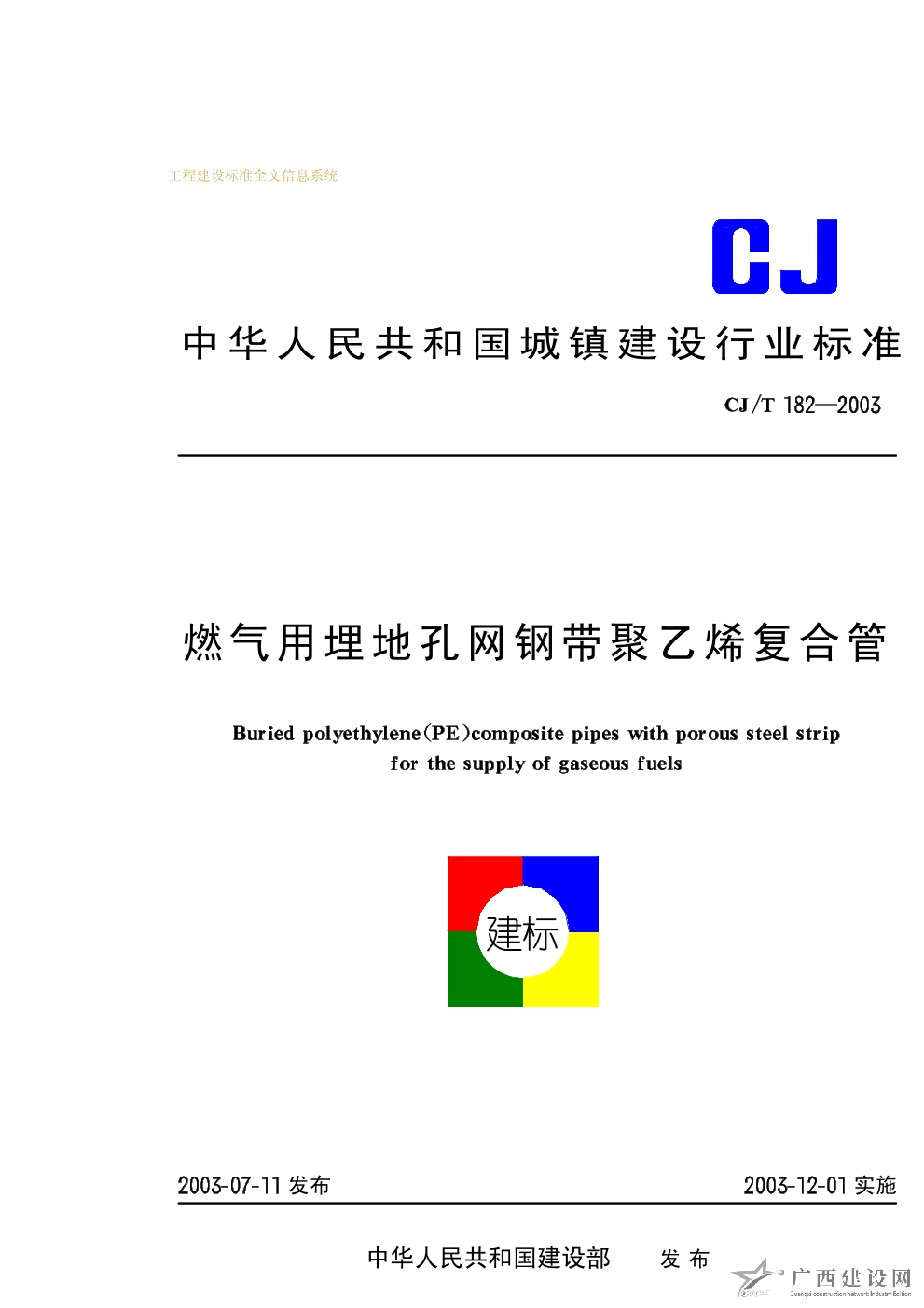 燃氣用埋地孔網鋼帶聚乙烯復合管 CJ/T182-2003