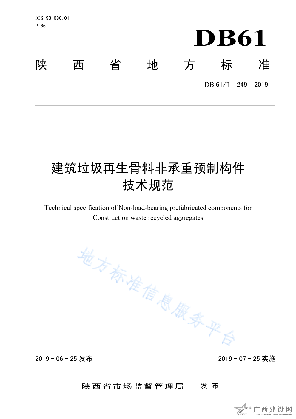 DB61 T1249-2019建筑垃圾再生骨料非承重預(yù)制構(gòu)件技術(shù)規(guī)范