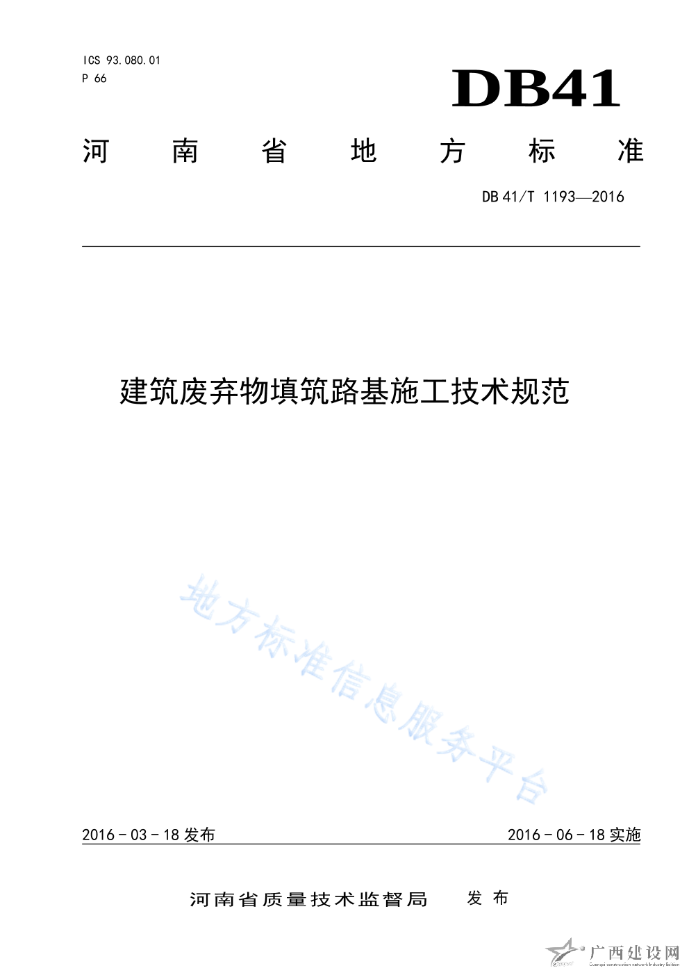 DB41 T1193-2016建筑廢棄物填筑路基施工技術規范