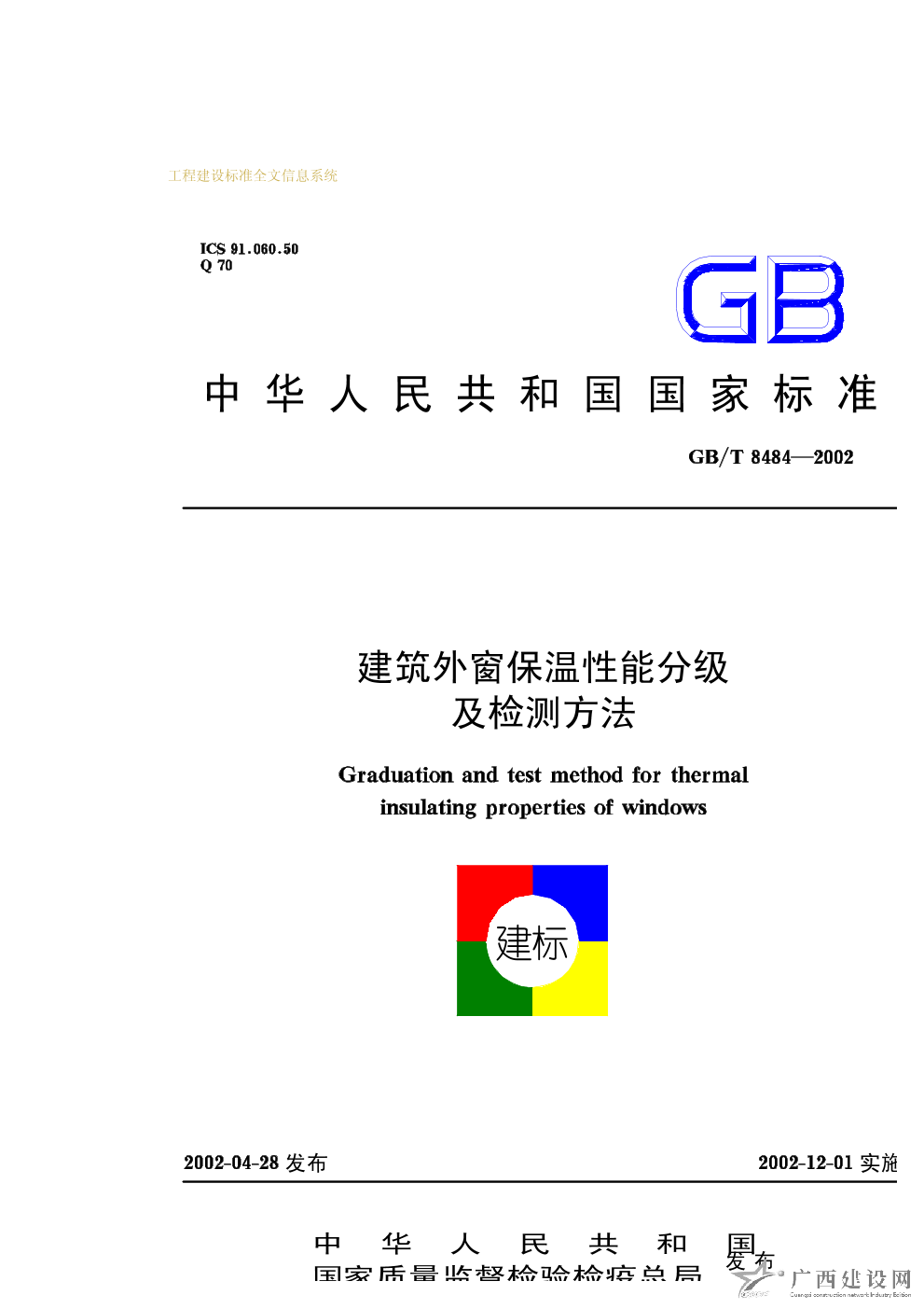 建筑外窗保溫性能分級及檢測方法 GB/T8484—2002
