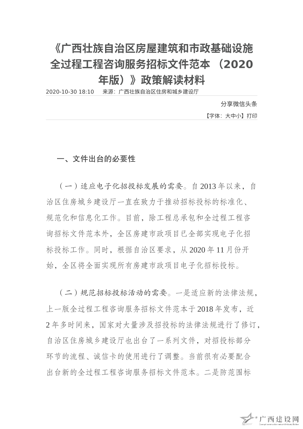 廣西壯族自治區(qū)房屋建筑和市政工程基礎(chǔ)設(shè)施全過程工程咨詢服務(wù)招標(biāo)文件范本(2020年版)