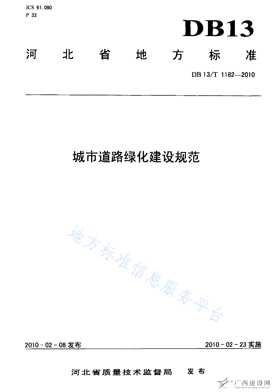 DB13 T 1182-2010城市道路綠化建設(shè)規(guī)范