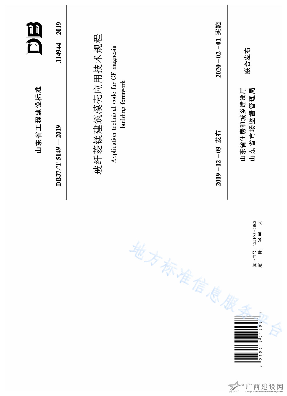 DB37 T5149-2019玻纖菱鎂建筑模殼應用技術規程
