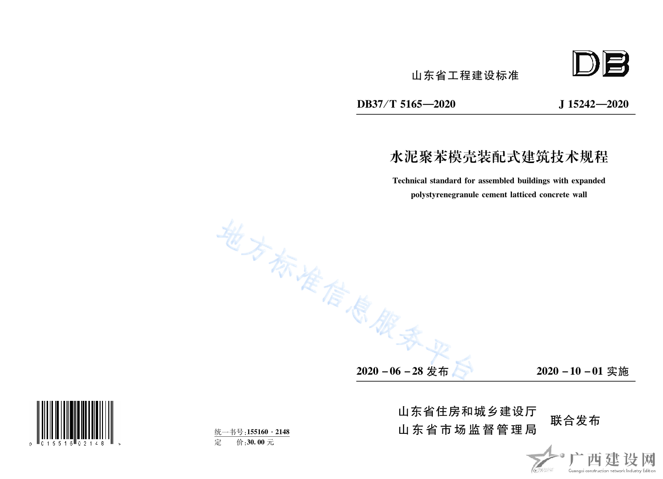 DB37 T5165-2020水泥聚苯模殼裝配式建筑技術規程
