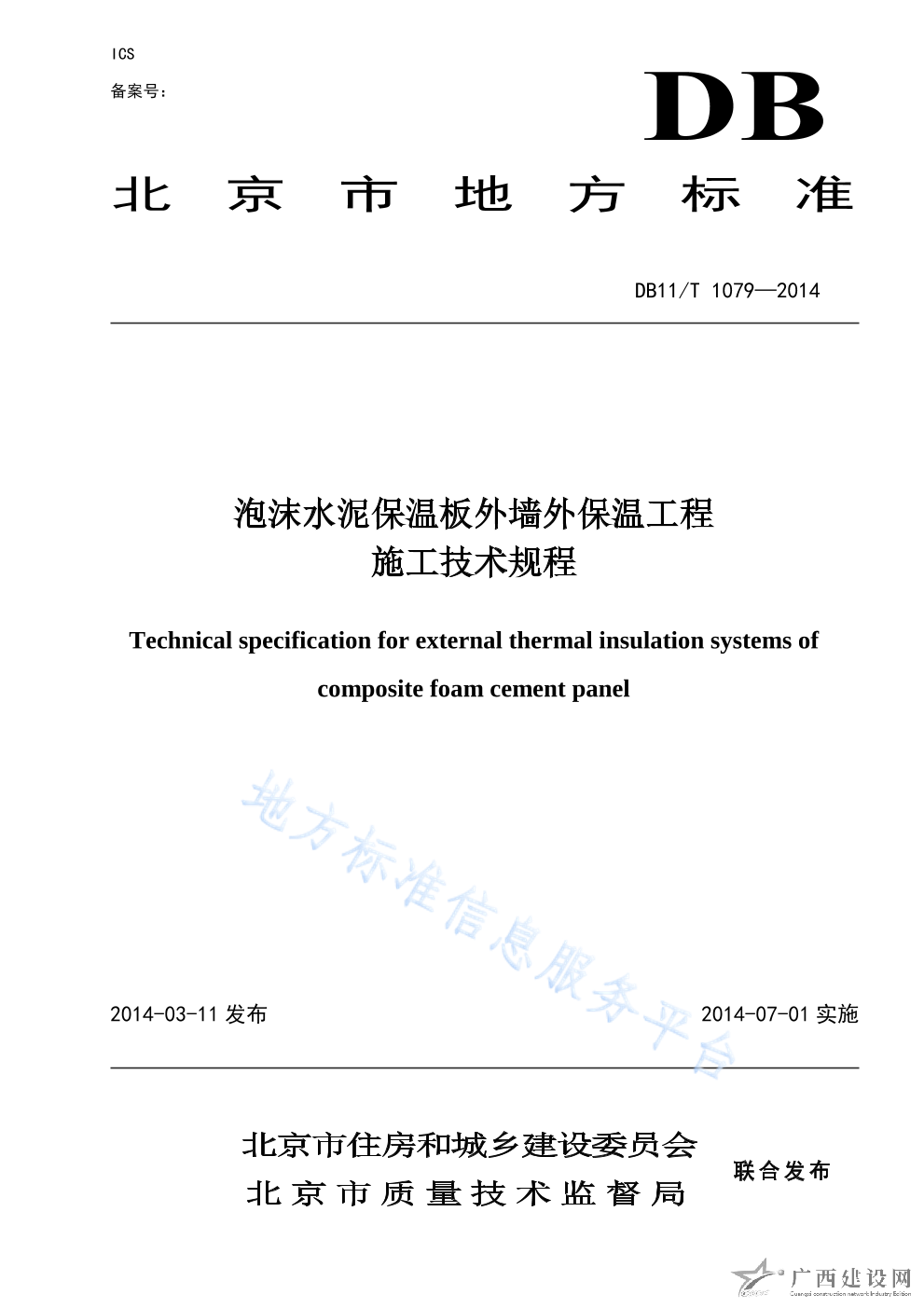 DB11 T_1079-2014泡沫水泥保溫板外墻外保溫工程施工技術(shù)規(guī)程