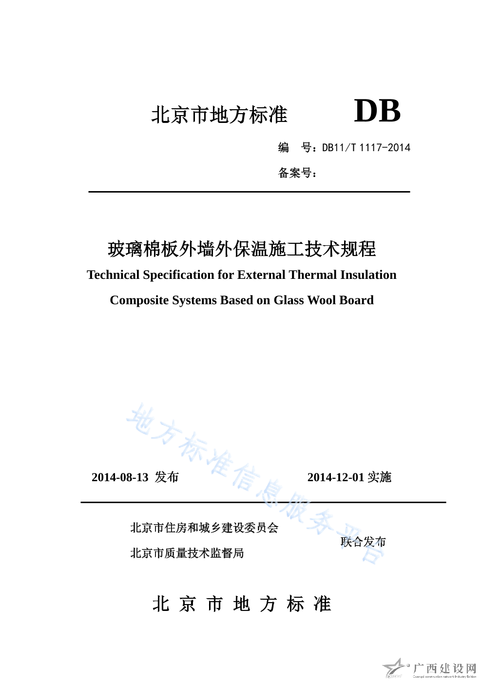 DB11 T_1117-2014玻璃棉板外墻外保溫施工技術(shù)規(guī)程