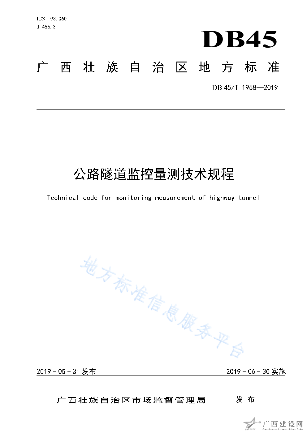 DB45T1958-2019公路隧道監(jiān)控量測技術(shù)規(guī)程