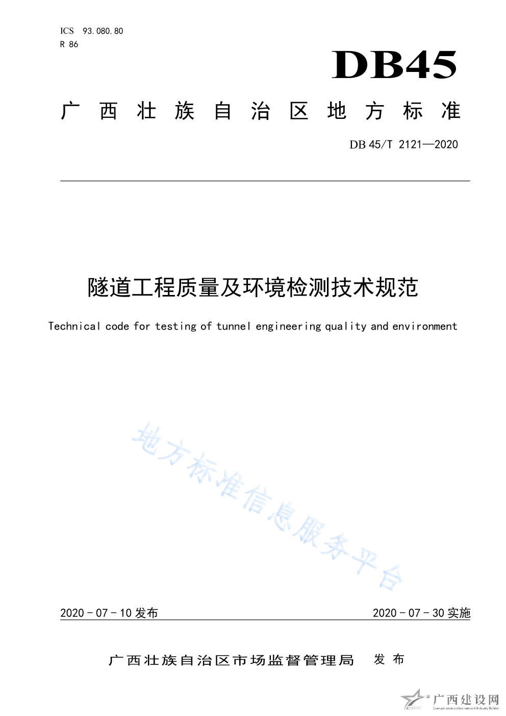 DB45T2121-2020隧道工程質(zhì)量及環(huán)境檢測技術(shù)規(guī)范