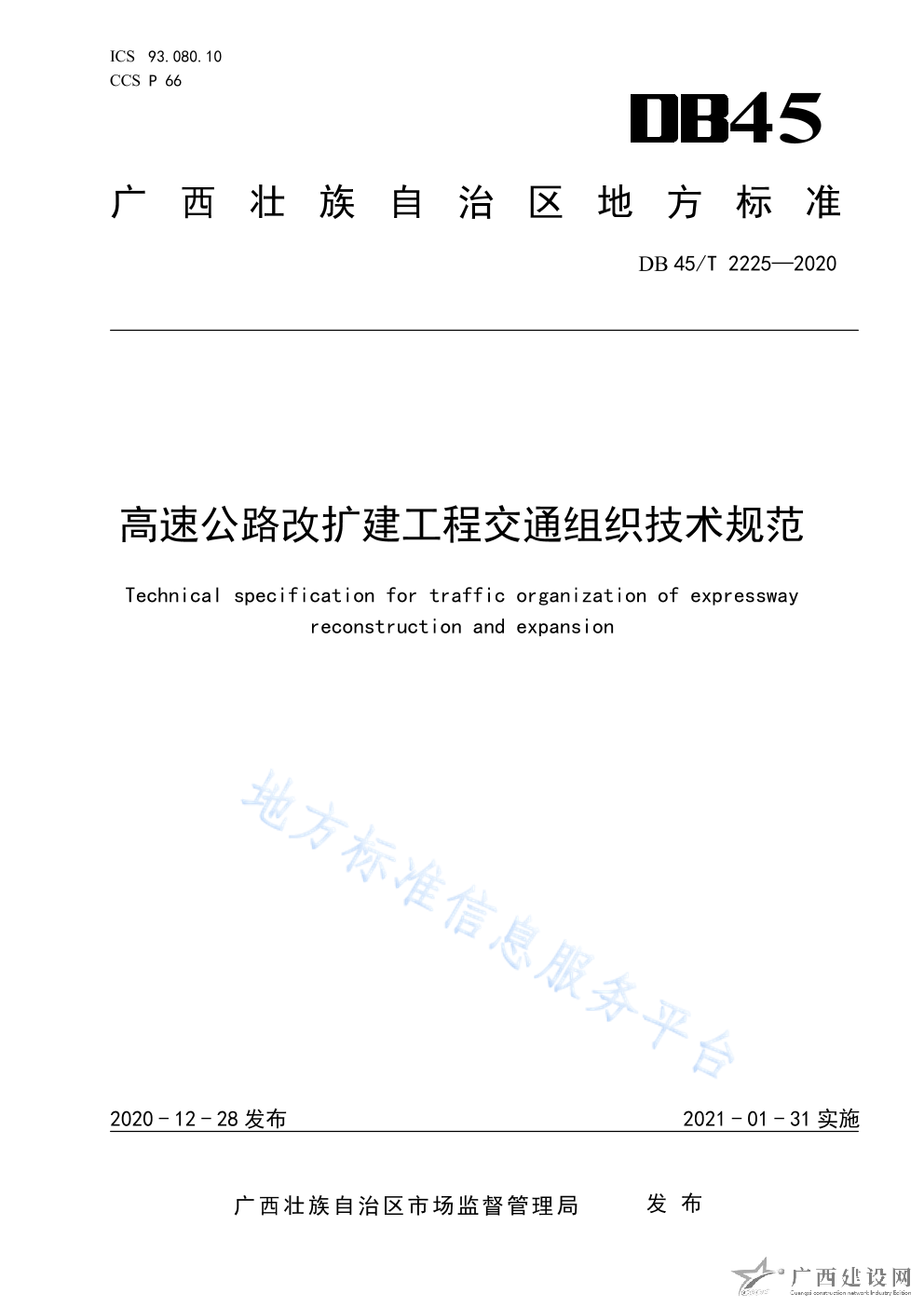 DB45T2225-2020高速公路改擴(kuò)建工程交通組織技術(shù)規(guī)范