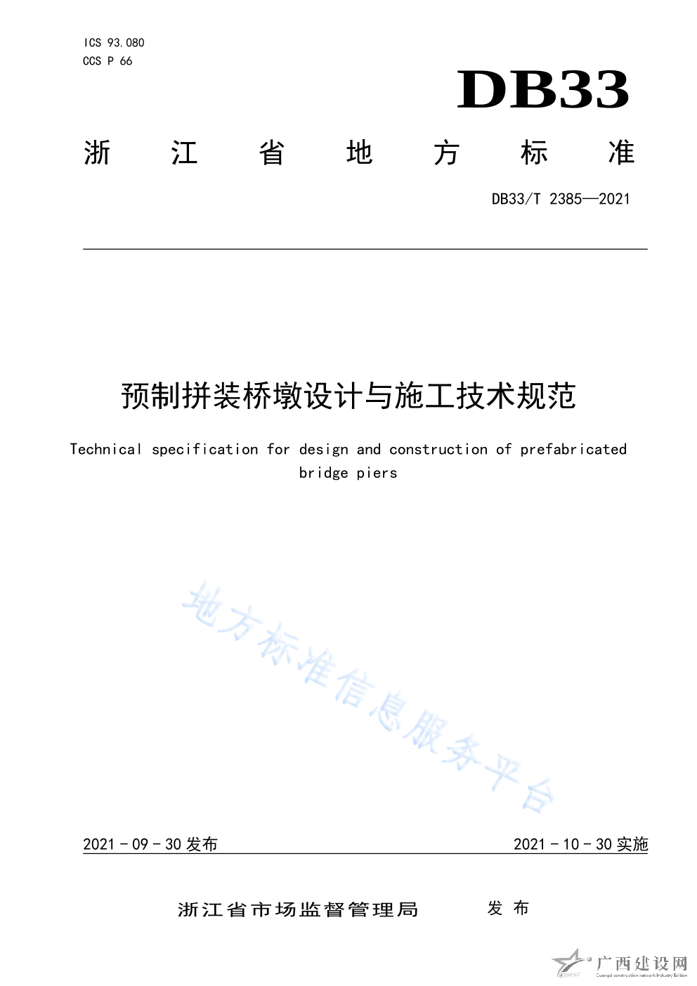 DB332385-2021預(yù)制拼裝橋墩設(shè)計(jì)與施工技術(shù)規(guī)范
