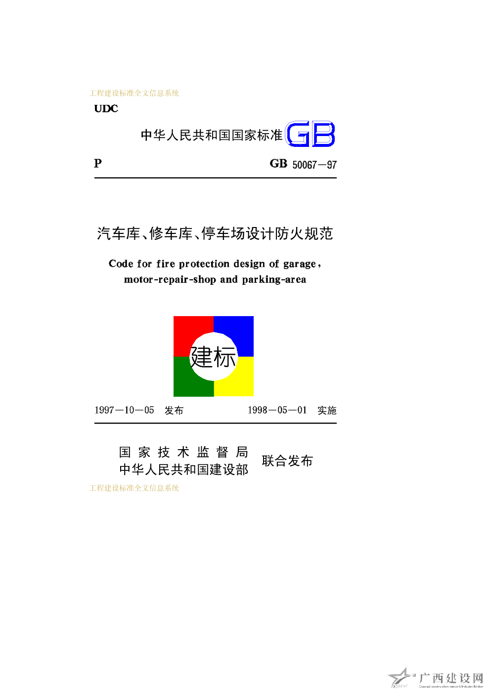 汽車庫(kù)、修車庫(kù)、停車場(chǎng)設(shè)計(jì)防火規(guī)范 GB50067-97