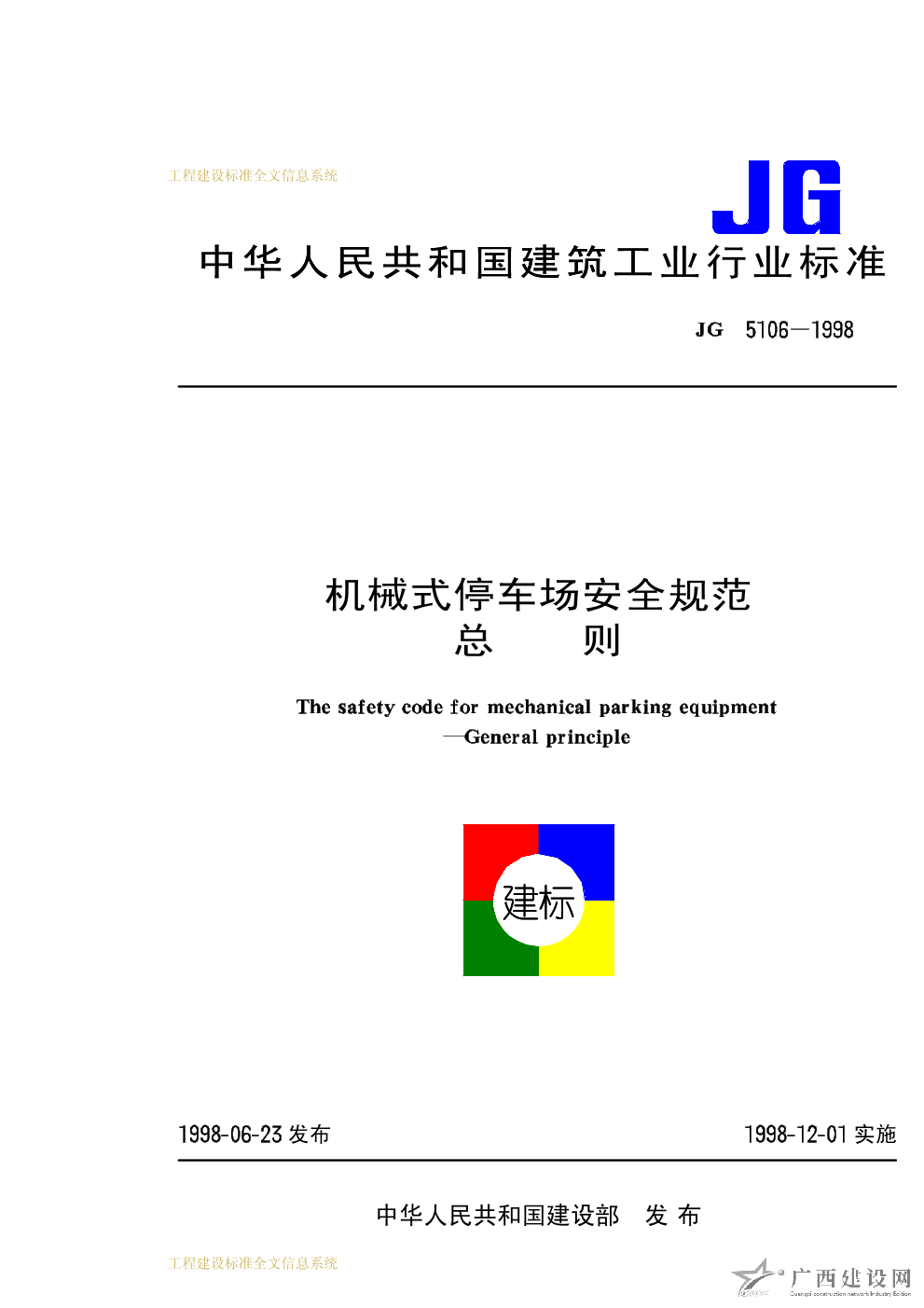 機(jī)械式停車場(chǎng)安全規(guī)范總則 JG5106-1998