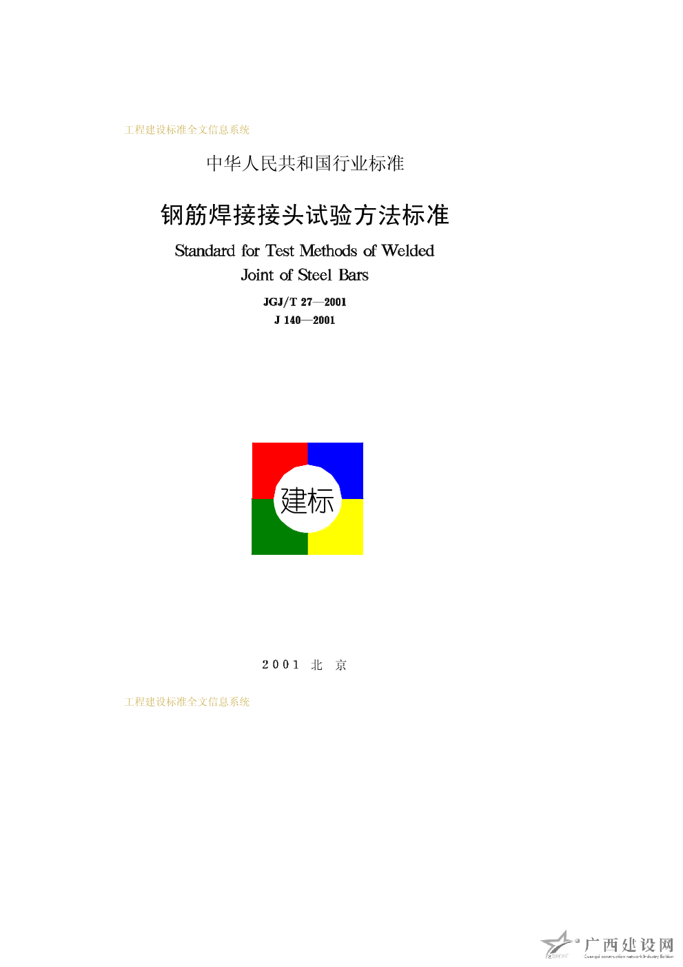 鋼筋焊接接頭試驗方法標準 JGJ/T27—2001