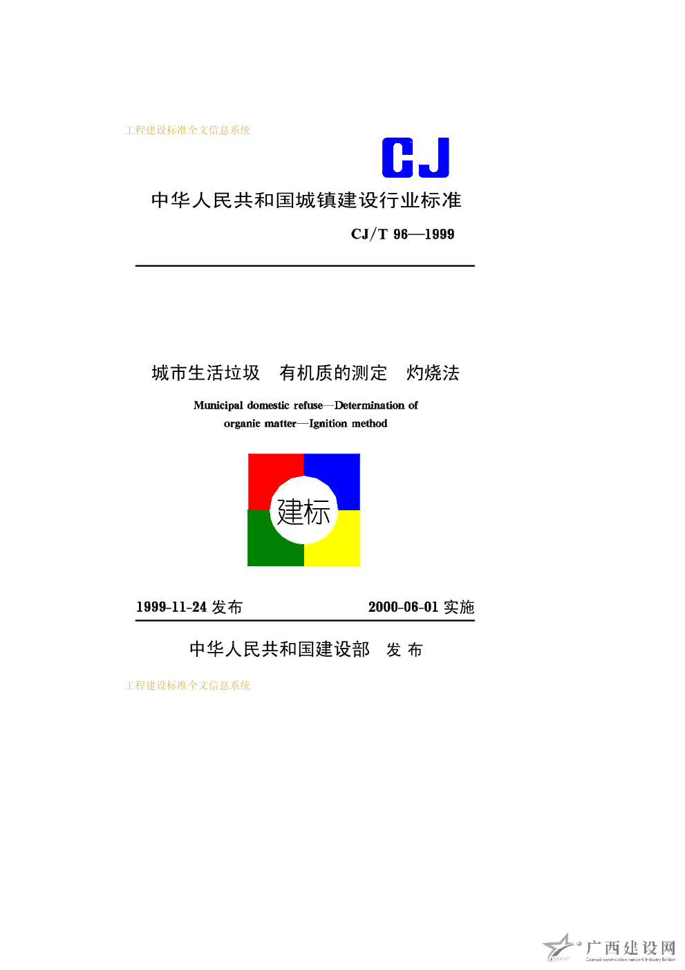 城市生活垃圾有機(jī)質(zhì)的測定灼燒法 CJ/T96—1999