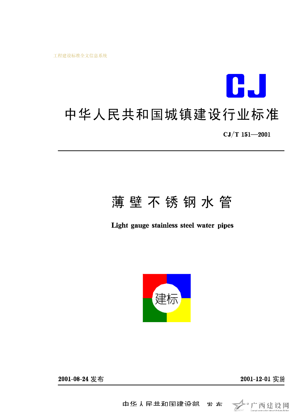 薄壁不銹鋼水管 CJ/T151—2001